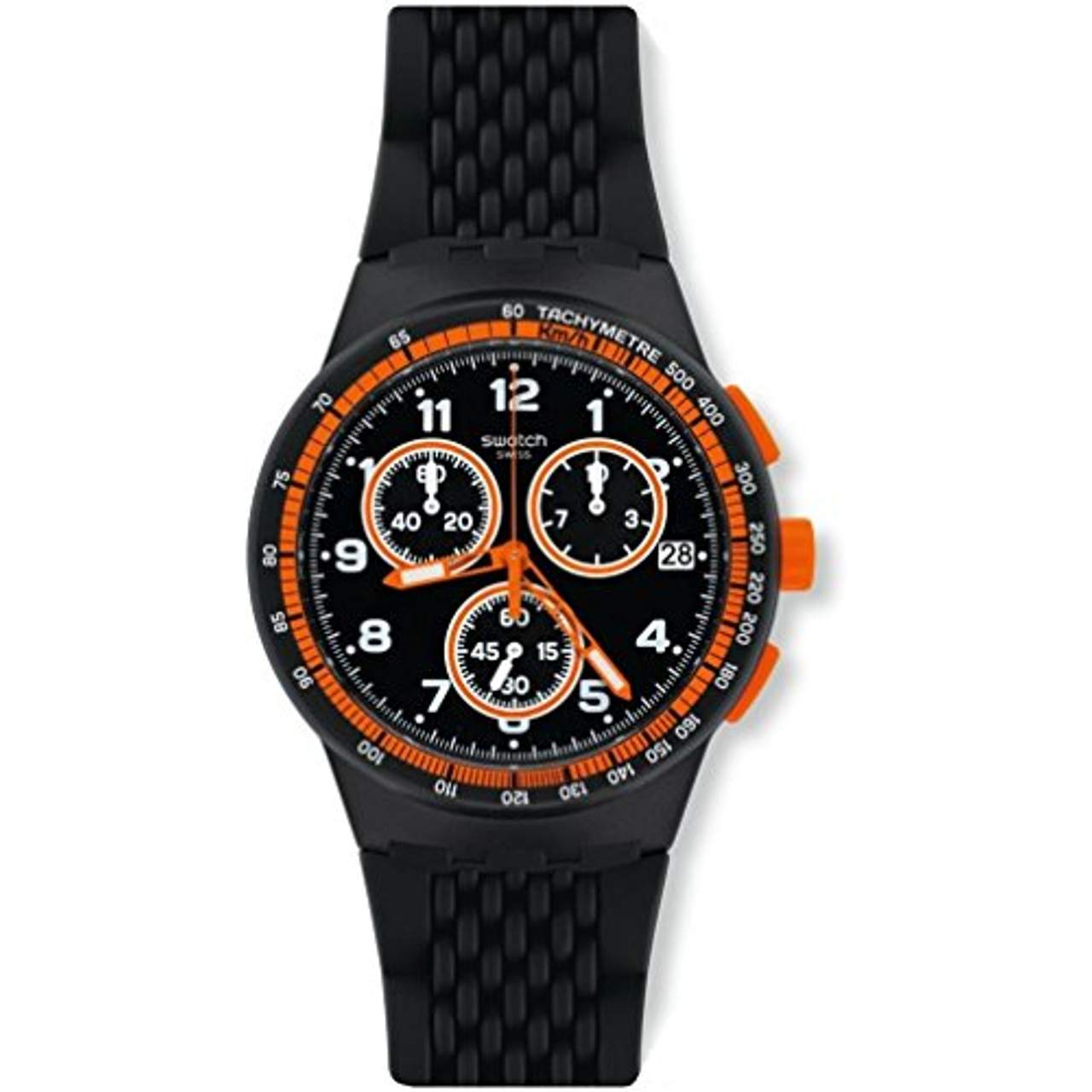 - Langlebige Konstruktion: Der Swatch Chronograph verfügt über ein schwarzes Kunststoffgehäuse und ein Mineralglas-Zifferblatt, wodurch er sehr widerstandsfähig ist und dem täglichen Verschleiß standhält.