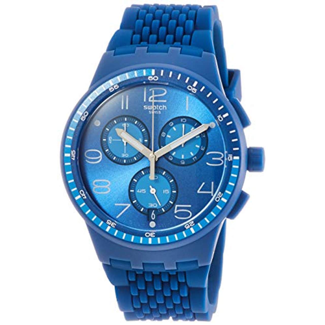 - Langlebiges Design: Der Swatch Chronograph besteht aus einem langlebigen blauen Kunststoffgehäuse und einem blauen, strukturierten Silikonarmband, das viele Jahre lang halten wird.