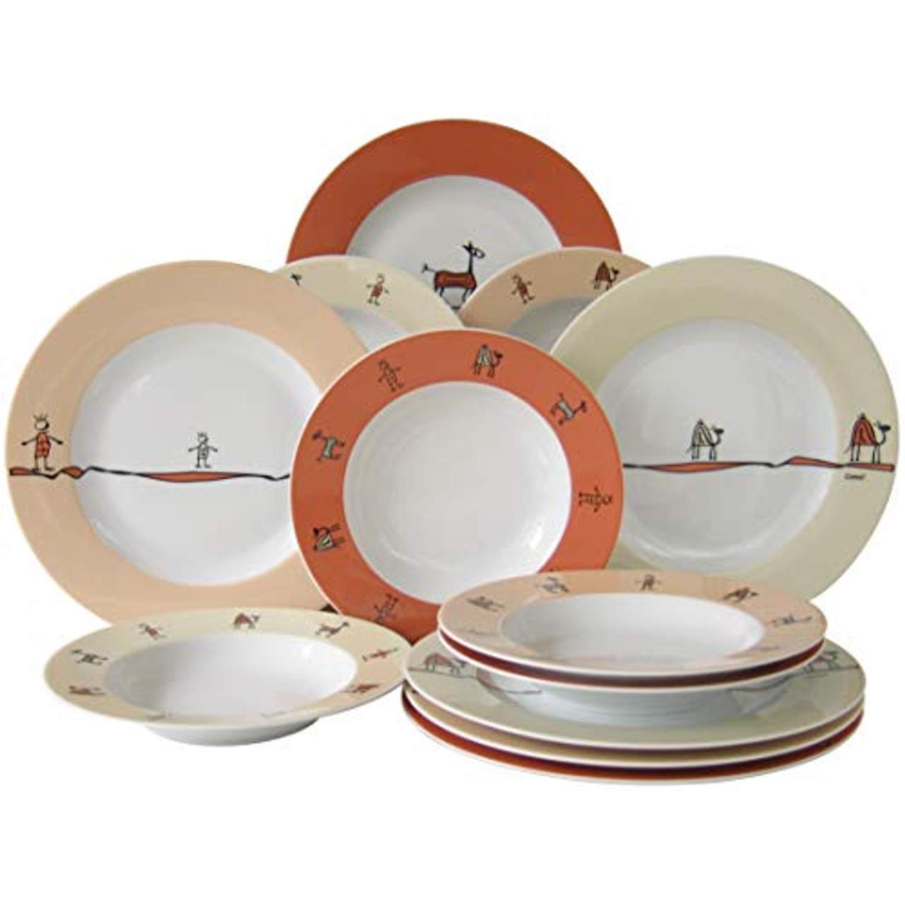 CreaTable 10815 Serie NatureCreaTable Tafelservice, Porzellan, 12 Teile, »ROMA NATURE«. CREATABLE Geschirr-Serie »ROMA NATURE« aus hochwertigem Porzellan mit interessantem Dekor in aktuellen Erdtönen Schoko/Latte Macchiato. Durch die drei Motive in 3 abgestimmten Farben wird das Geschirr lebhaft und sorgt für Stimmung auf Ihrem Tisch. Spülmaschinenfest und mikrowellengeeignet. Das Tafelservice »ROMA NATURE« von CREATABLE besteht aus: 6 Speiseteller 27 cm. 6 Suppenteller 22,5 cm.