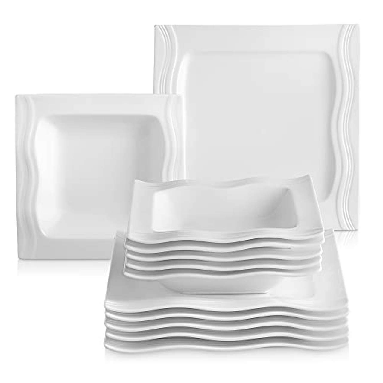 Über MALACASA Serie Mario Cremeweiß Porzellan Tafelservice 12 TLG
