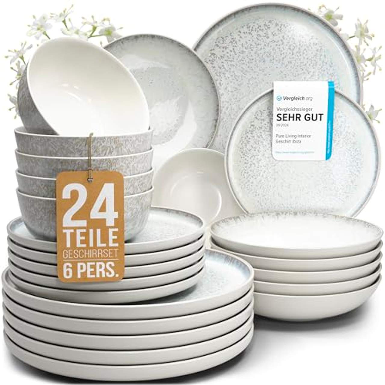 Über Steingut Geschirrset 6 Personen Ibiza 24 tlg. Testsieger