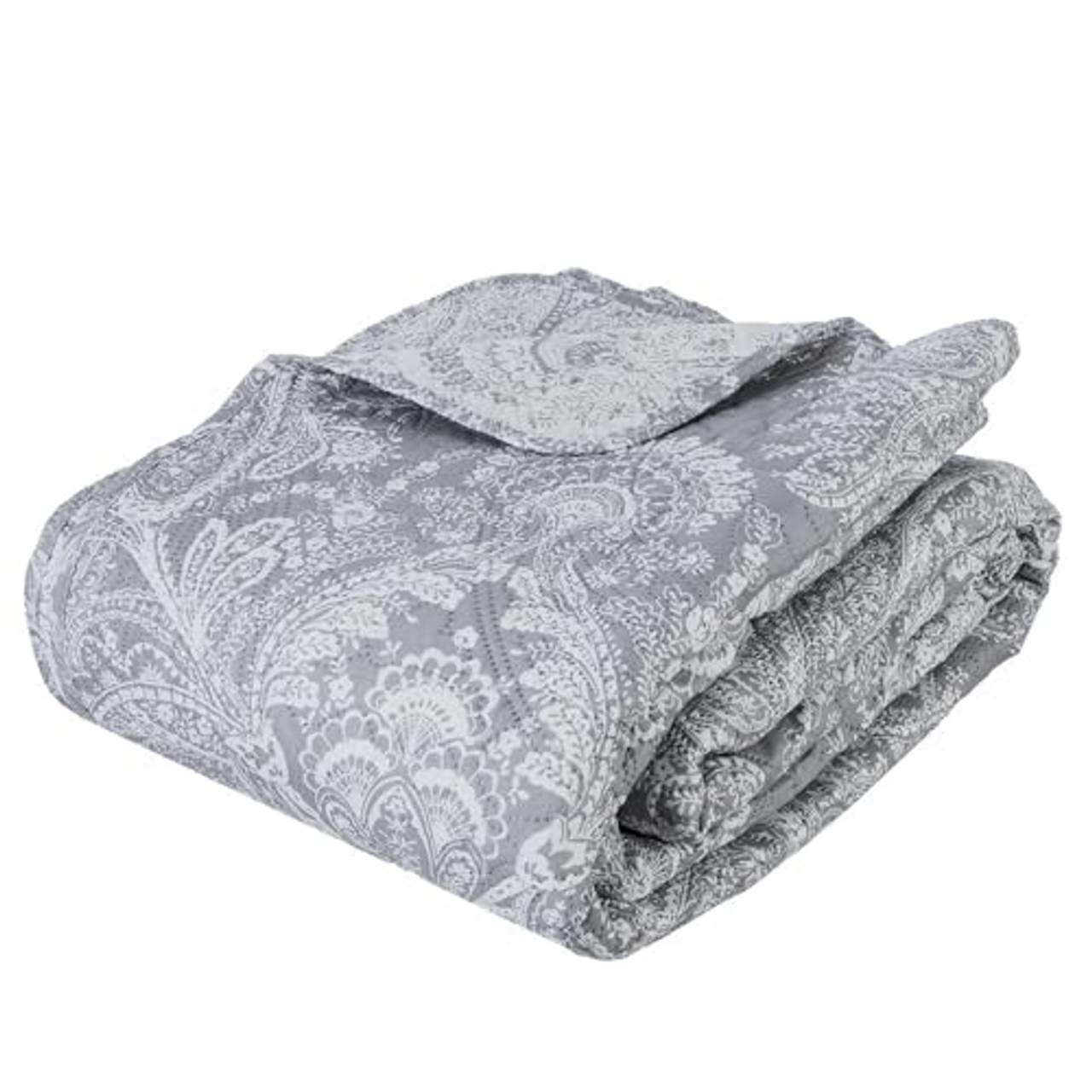 Die ATMOSPHERA Tagesdecke ist eine großartige Wahl für alle, die in ihrem persönlichen Tagesdecken-Test Eleganz suchen. Ihr großes Format und die abgerundeten Kanten sind praktisch und raffiniert zugleich und passen wunderbar in Doppelbetten. Wir schätzen das Material aus 100 % Polyester, das eine weiche Textur bietet, die bequem und pflegeleicht ist und bei bis zu 30 °C in der Maschine gewaschen werden kann. Die sanften Grautöne mit weißen Arabesken sorgen für eine elegante Ästhetik und machen sie auch außerhalb des Schlafzimmers vielseitig einsetzbar. Diese Tagesdecke schützt die Bettwäsche und spendet gleichzeitig Wärme, sodass eine gemütliche Umgebung entsteht. Aufgrund ihres Designs und ihrer Funktionalität ist sie in unserem Kaufratgeber eine stilvolle und praktische Ergänzung für jedes Zuhause.