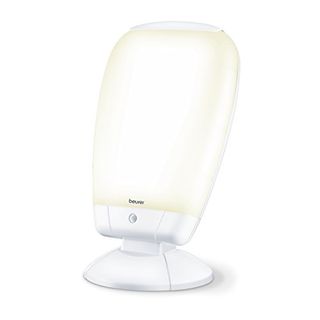 Die Beurer TL 50 ist eine Tageslichtlampe, die das Wohlbefinden an dunklen Tagen, besonders im Herbst und Winter, verbessern soll. Sie simuliert das natürliche Sonnenlicht und beugt so Lichtmangelsymptomen vor, die zu Depressionen, Energiemangel und Antriebslosigkeit führen können. Mit einer Lichtintensität von ca. 10.000 Lux (bei einem Abstand von ca. 13 cm) erzeugt diese Tischlampe flimmerfreies und UV-freies angenehmes Licht.