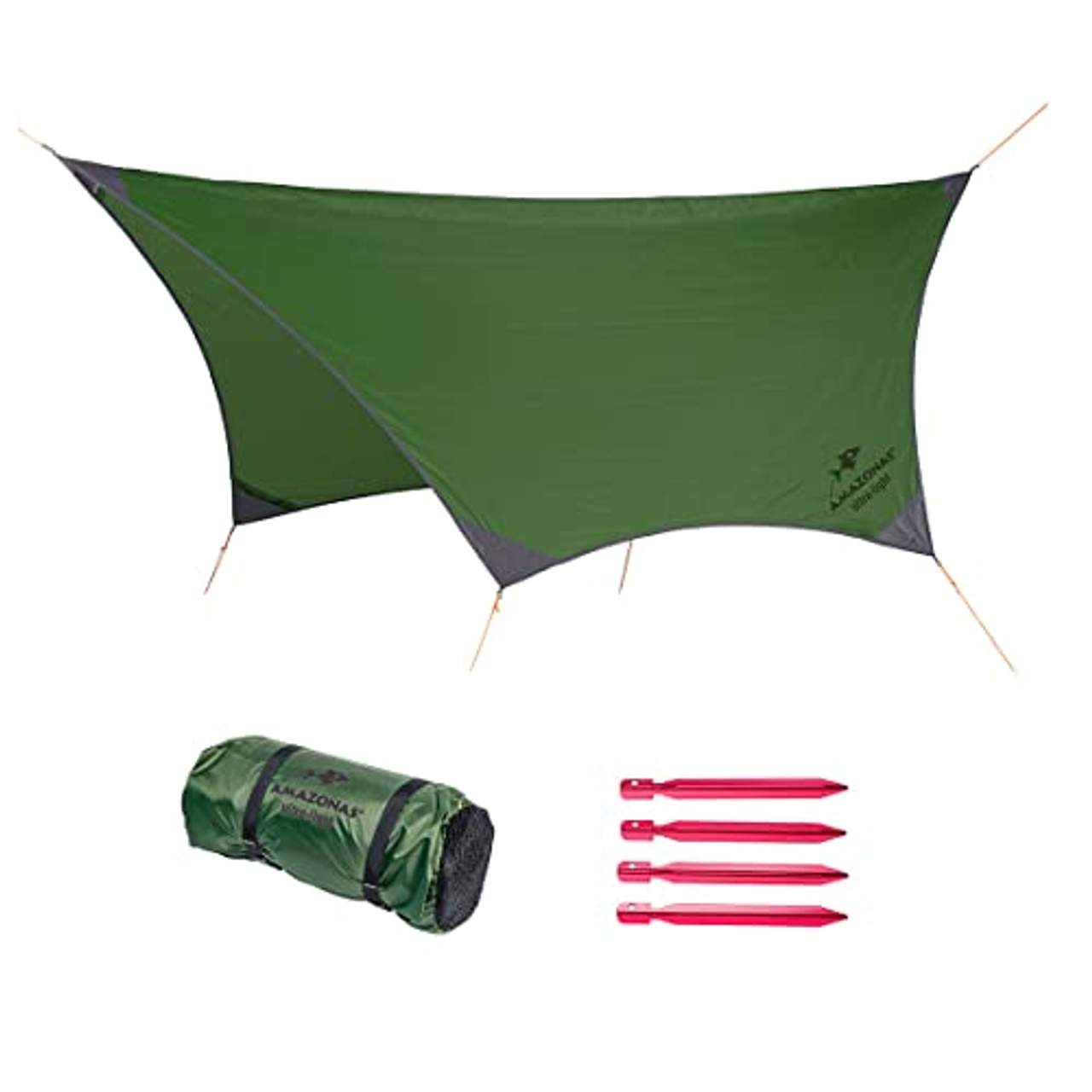 - Ultraleichtes Outdoor-Erlebnis: Das AMAZONAS Ultra-Light Traveller Tarp bietet ein ultraleichtes Outdoor-Erlebnis, da es genau auf die Maße der ultraleichten Hängematte zugeschnitten ist. So wird die Hängematte zu einem Outdoor-Bett, mit dem man die freie Natur genießen kann, ohne eine schwere Plane mit sich herumtragen zu müssen.