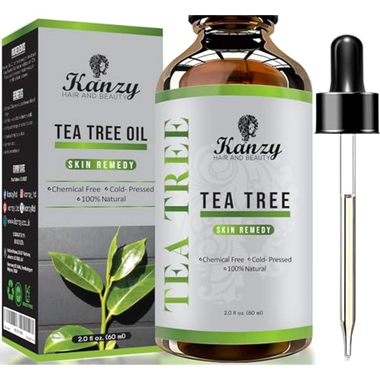 Kanzy Teebaumöl Bio Naturrein 60ml ist ein Teebaumölprodukt der Marke KANZY HAIR AND BEAUTY. Es kann zur Verbesserung der Haut-, Haar-, Gesichts- und Kopfhautpflege sowie der Nagelpflege verwendet werden. Seine Formel enthält 100% natürliche Inhaltsstoffe, die mit Traubenkernöl gemischt sind, was es angenehm duftend und hautfreundlich macht. Das Öl hilft, trockenem Haar Feuchtigkeit zu spenden und reinigt die Kopfhaut von Ablagerungen für ein besseres Aussehen. Außerdem entfernt es unerwünschte Fette für eine strahlende Haut. Kunden haben eine Zufriedenheitsgarantie, wenn sie mit dem Produkt unzufrieden sind.