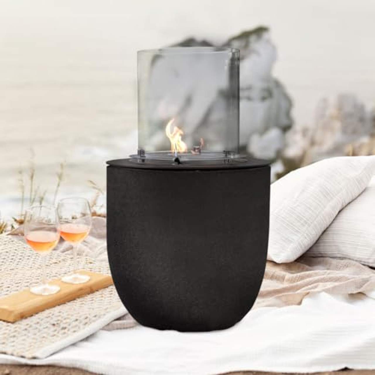 Der muenkel design Vigo Asphalt-schwarz wird mit Bioethanol befeuert, einer sauberen und umweltfreundlichen Option für deinen Außenkamin. Er sorgt für eine schöne Flamme, ohne dass Rauch oder Asche entsteht oder ein Schornstein benötigt wird.