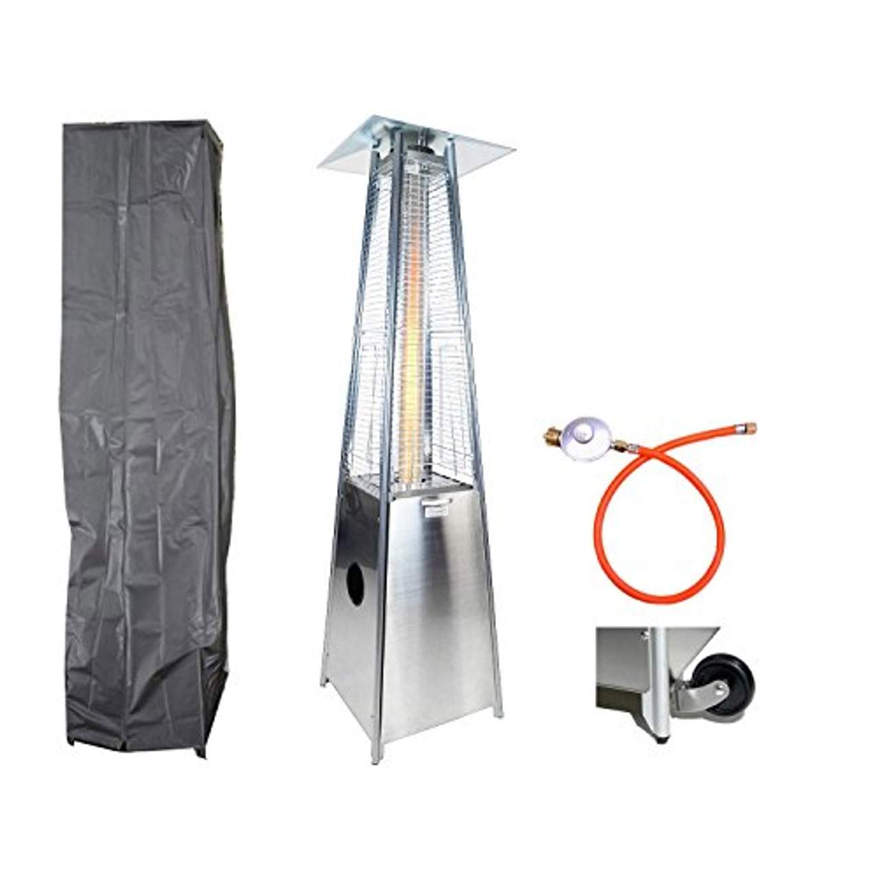 Heizleistung bis 9,5 kW, Stufenlos regelbar Geeignet für handelsübliche Gasflaschen mit 3kg, 5kg oder 11kg Thermoelektrischer Piezo-Zünder Für Propan-Gas, Betriebsdruck 50 mbar, Fackel-Effekt Edelstahloptik/Aluminium, Inkl. Anschlußschlauch Edles Design, wohlige Wärme Gewicht ca. 27kg Maße ca. 50x50x190cm, Maße Reflektor ca. 50x50cm Gasverbrauch max. 0,65 kg/h (18)Lieferumfang