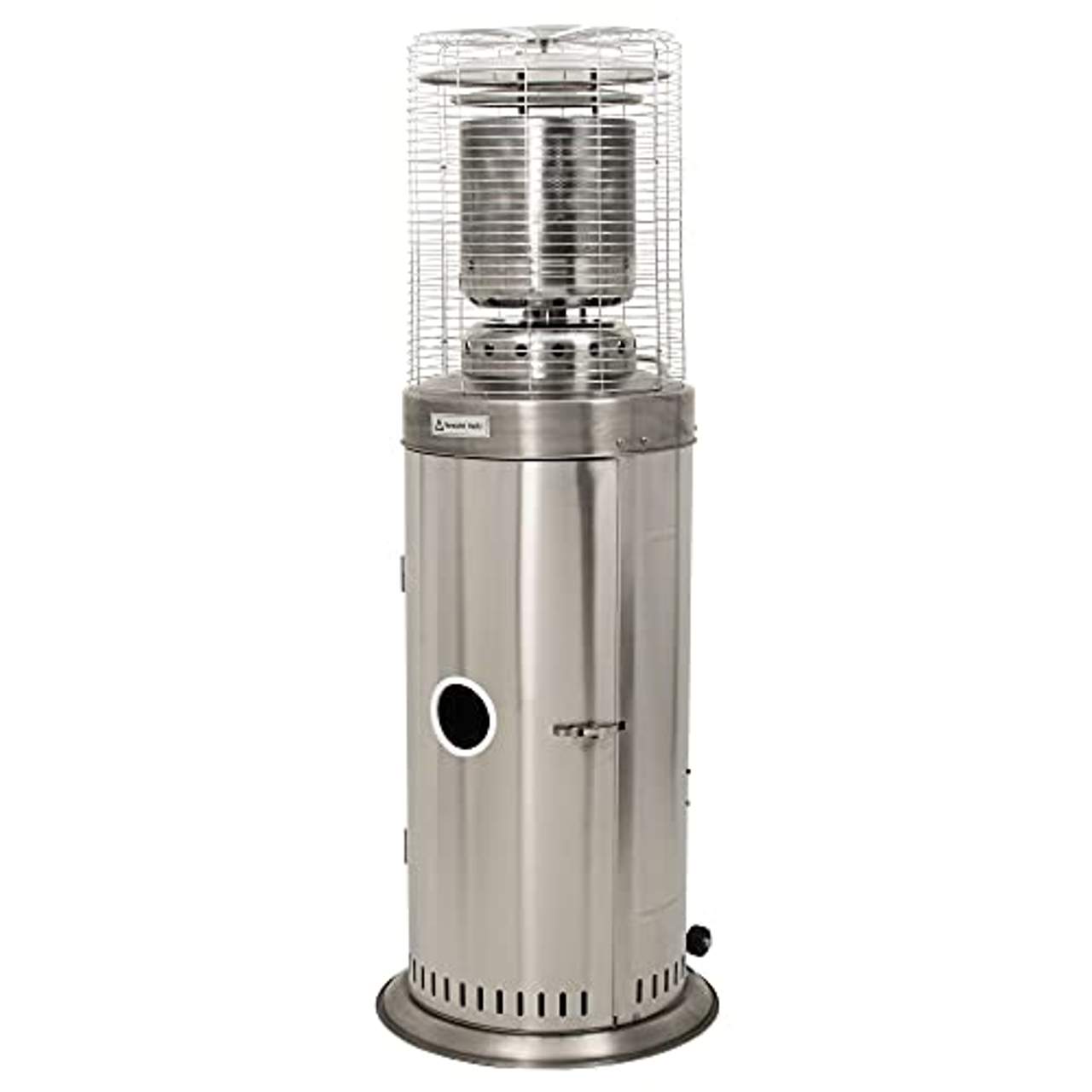 Ideal für Garten, Terrasse und mehrDer Heizstrahler ist aus hochwertigem Edelstahl gefertigt und erwärmt mit einer ordentlichen Leistung von max. 13,5 kW Ihre Umgebung. Egal ob Terrasse oder Garten, in Nähe dieses Heizgeräts können Sie auch kältere Abende und Nächte, bei geselligem Beisammensein verbringen. Das Heizgerät bietet im Inneren genügend Platz für eine 11-kg-Gasflasche und wird direkt mit Gasanschlussschlauch und Druckminderer geliefert. Mit den Laufrädern und dem Griff können Sie den Terrassenheizer ideal verstauen und unter Dach bringen.Highlights