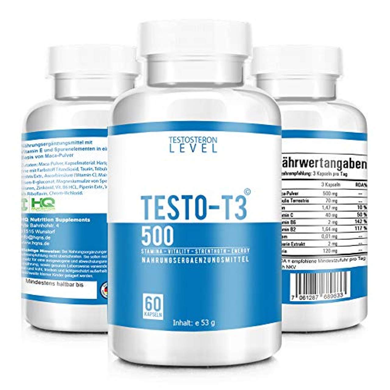 - Testosteron-Unterstützung: Testo-T3 500 Hardcore Booster trägt zur Aufrechterhaltung eines normalen Testosteronspiegels bei und ermöglicht es dem Benutzer, sein Training auf die nächste Stufe zu heben.