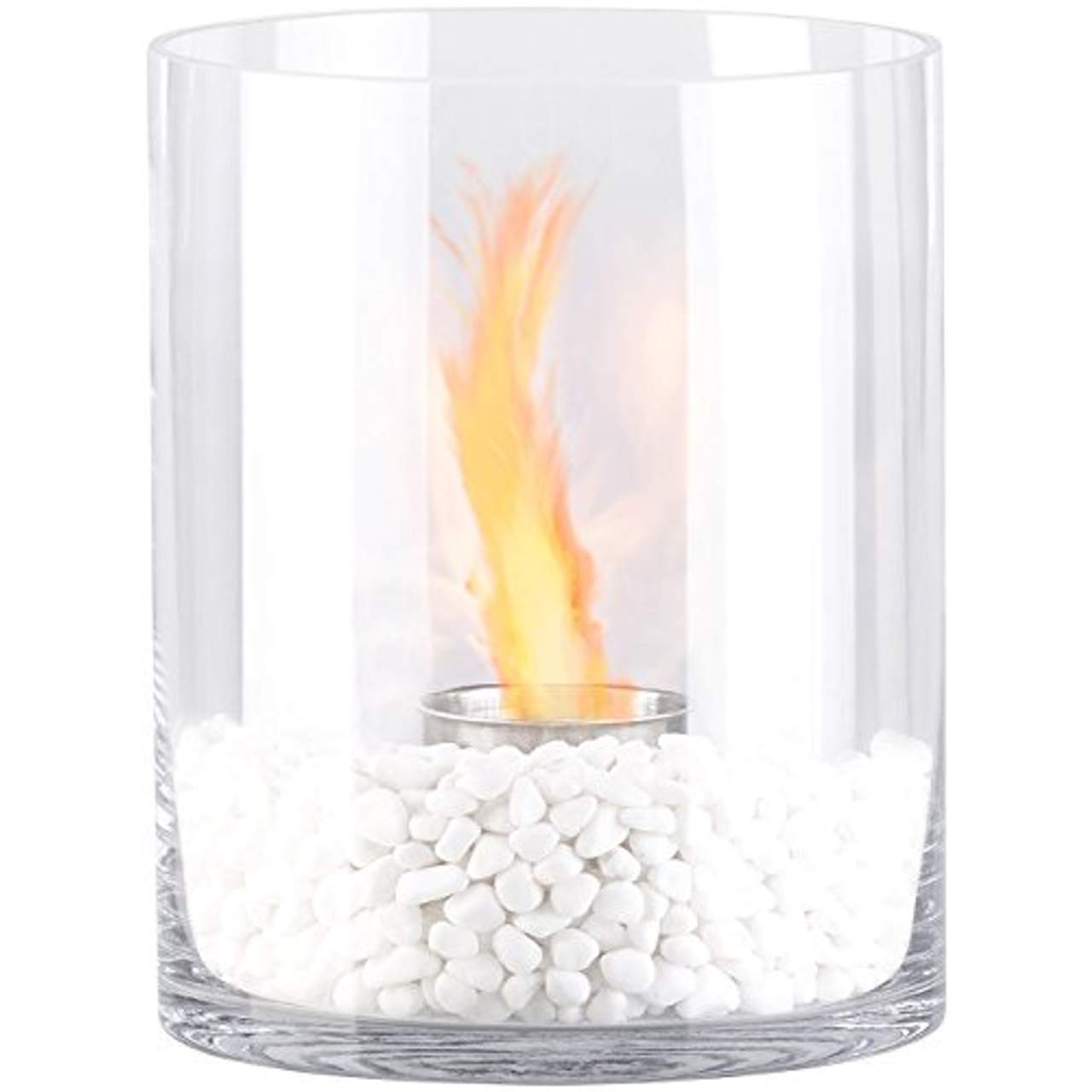 Carlo Milano Tischkamin Glas-Dekofeuer KasraGläsern und edel: Tolles Feuerambiente für Ihre WohnungBetrachten Sie das Spiel der Flammen als gläserner Rundum-Blick auf Ihrem Tisch!Dieser große Feuer-Zylinder ist die elegante Alternative zu einem kleinen Kamin für Zuhause. Das ruß- und geruchsfreie Bio-Ethanol verbrennt in einem 80 ml umfassenden Brenner aus hochwertigem Edelstahl und bietet Ihnen damit rund 80 Minuten romantische Wohlfühl-Atmosphäre.Besonders auf großen Tischen macht das Glas-Dekofeuer „Kasra“ mit seinen kleinen hellgrauen Dekosteinchen etwas her.Aber auch im Wintergarten, in Ihrem Bad und überall dort, wo sie edle Lichtakzente setzen möchten, beeindruckt das wunderschöne Flammenspiel.Zubehör- & Mitbestell-Empfehlungen:
