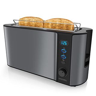 - Größe und Anzahl der Schlitze: Toaster unterscheiden sich im über die Größe und damit wie viele Toast oder Brotscheiben du gleichzeitig toasten kannst. Je nach Größe und Bauart gibt es 1-Scheiben-Toaster, 2-Scheiben-Toaster, 4-Scheiben-Toaster oder Lang-Schlitz-Toaster; letztere eignen sich ideal auch für Brotscheiben oder vier Toasts gleichzeitig.