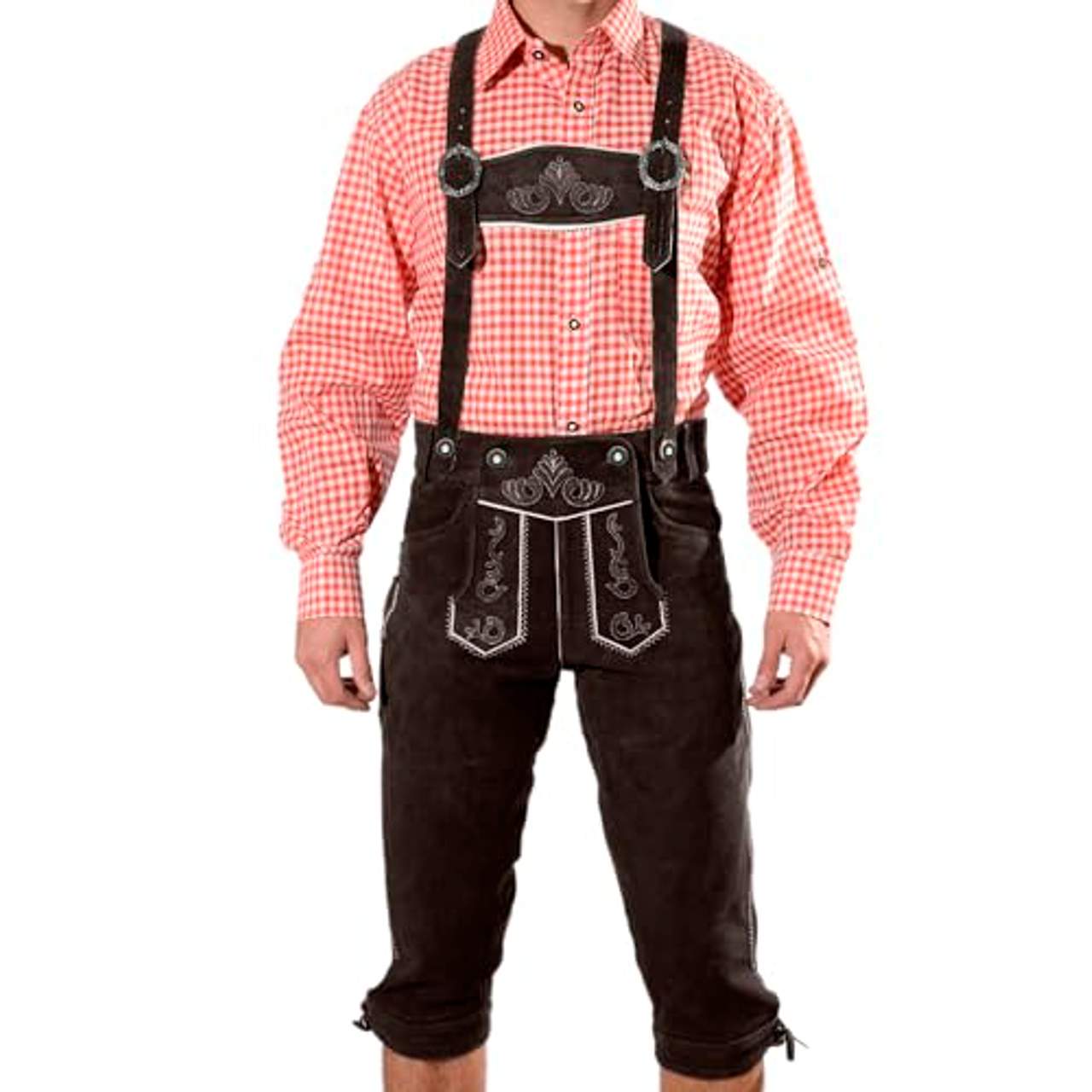 Die traditionellen Lederhosen gibt es in einem satten und eleganten Dunkelbraun, das deinem Outfit Raffinesse verleiht.