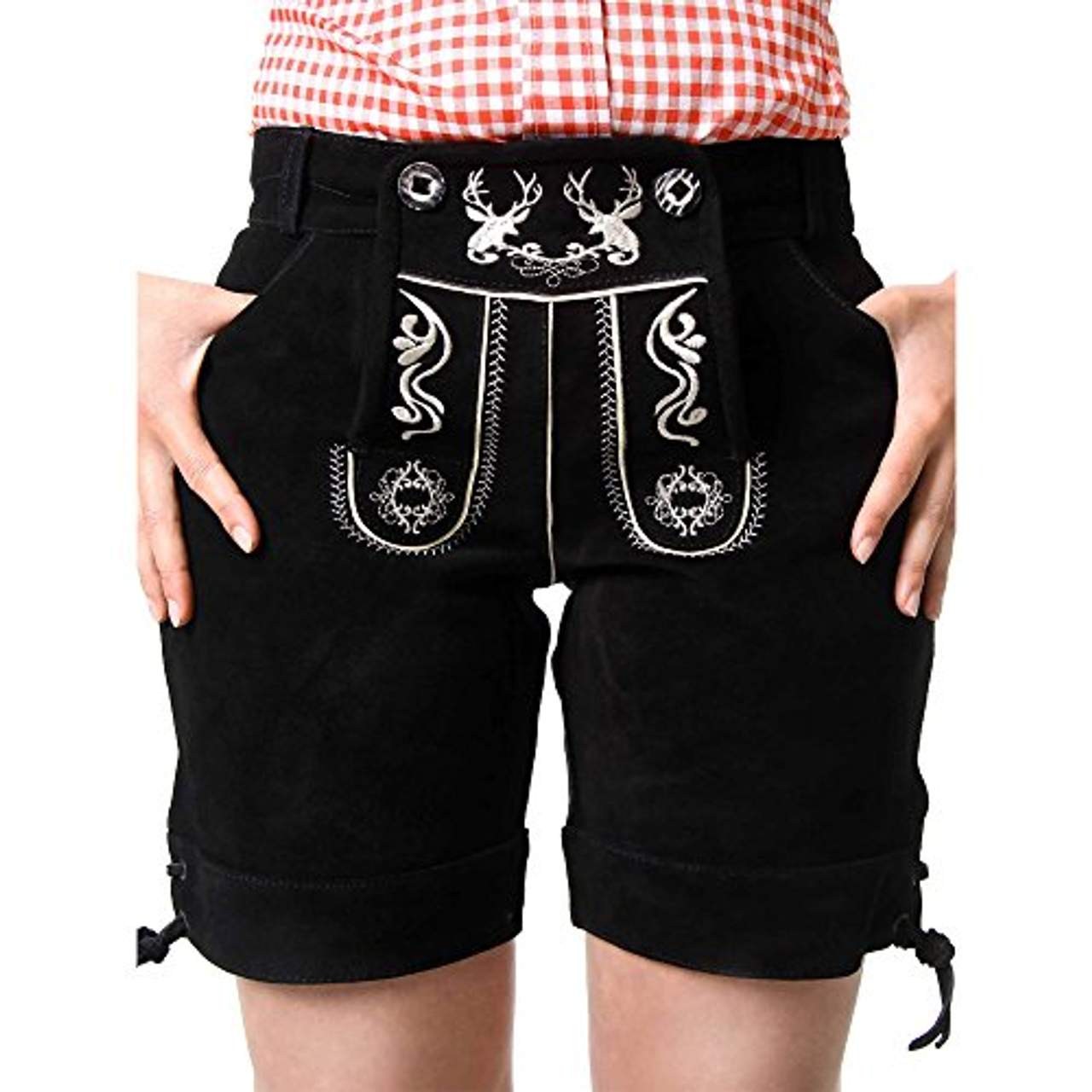 - Damen Jugendstil Trachtenlederhose Oktoberfest kurz Trachten Lederhose Trachtenhose