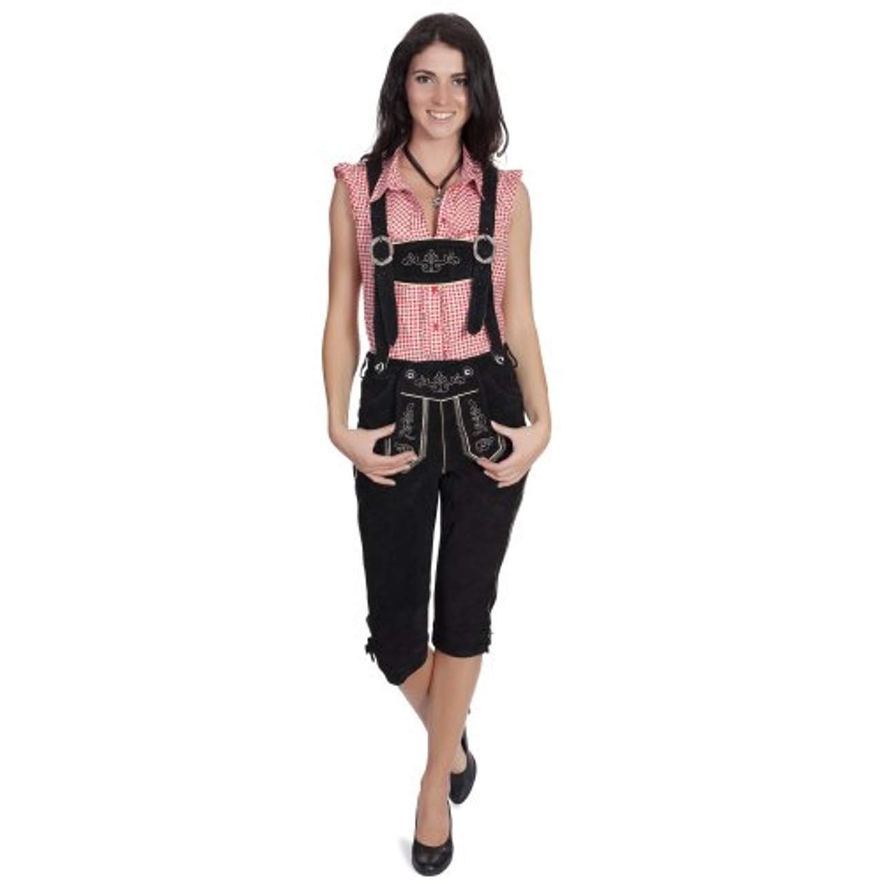 - Damen Jugendstil Trachtenlederhose Oktoberfest kurz Trachten Lederhose Trachtenhose