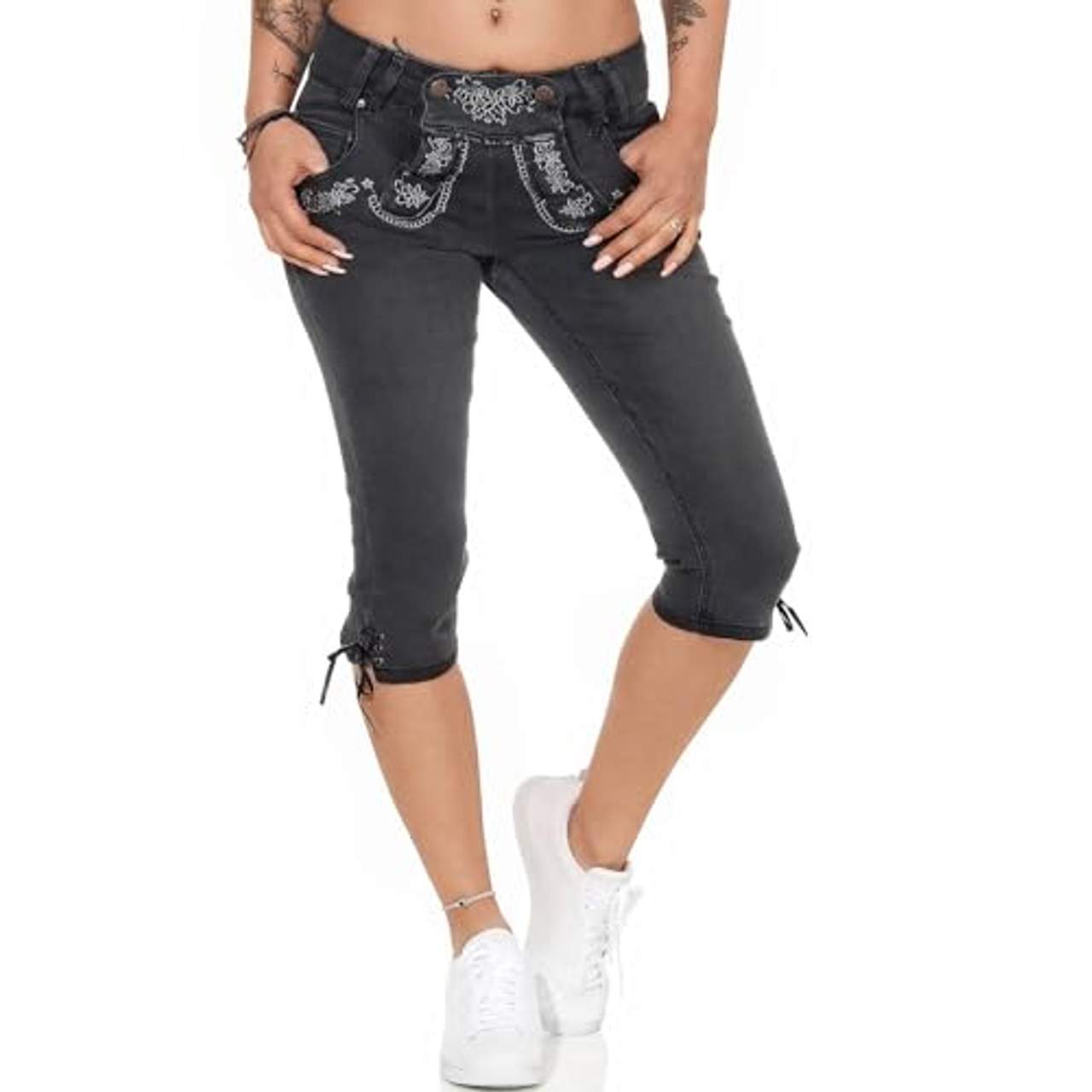 - Hailys Damen Capri Jeans Trachten Hose Lederhose Oktoberfest