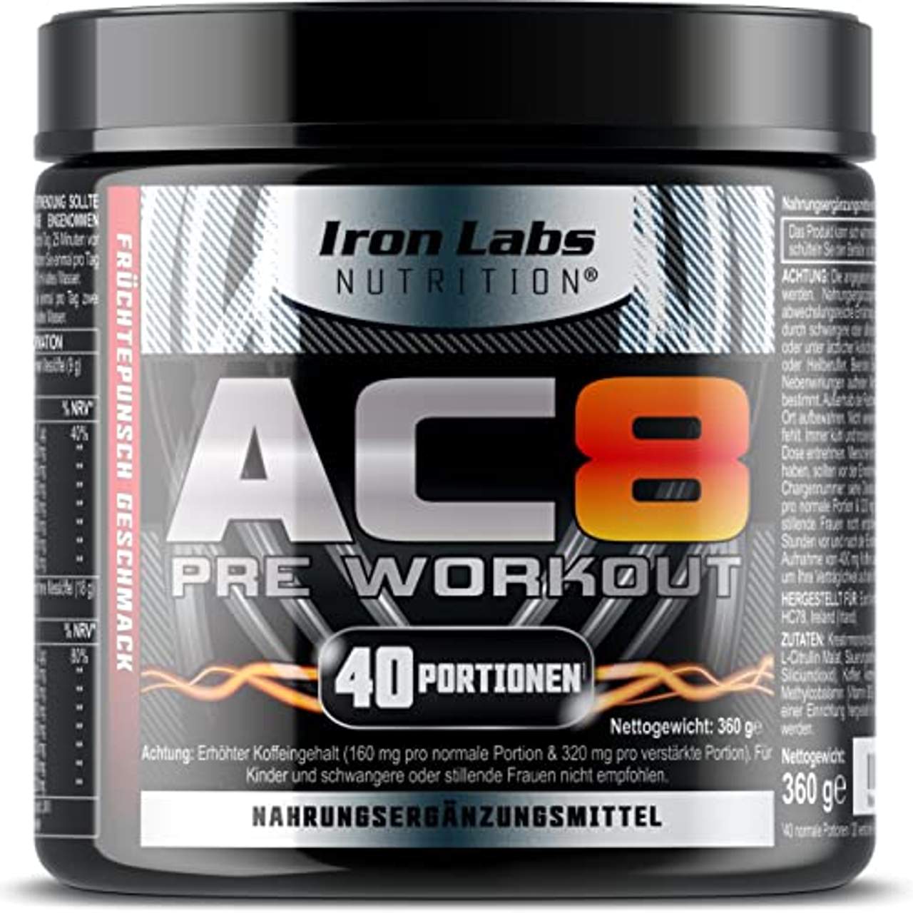 AC8 Xtreme Hadcor Pre Workout Booster ist ein Nahrungsergänzungsmittel von Iron Labs Nutrition. Es kommt in einem Fruchtpunsch-Geschmack, der über einen Zeitraum von 6 Monaten entwickelt und perfektioniert wurde. Pro Portion liefert es 13.400 mg aktive Inhaltsstoffe. Ein Behälter enthält 306 Gramm mit 40 regelmäßigen Portionen (pro halben Messlöffel).