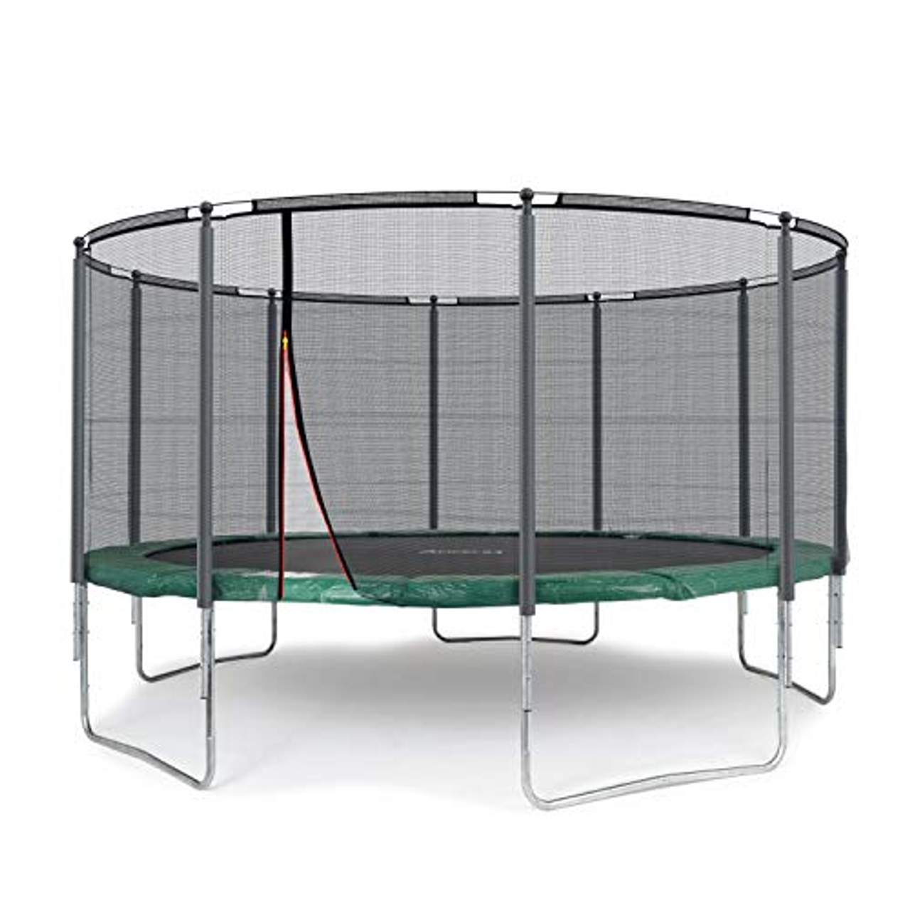 - Sicherheitsmerkmale: Das Trampolin verfügt über ein extra stabiles Sicherheitsnetz mit Schutzring an der Oberseite und 8 gepolsterten Stangen für optimalen Schutz vor Verletzungen. Es hat auch einen verstärkten Ring an der Oberseite des Netzes für zusätzliche Sicherheit.