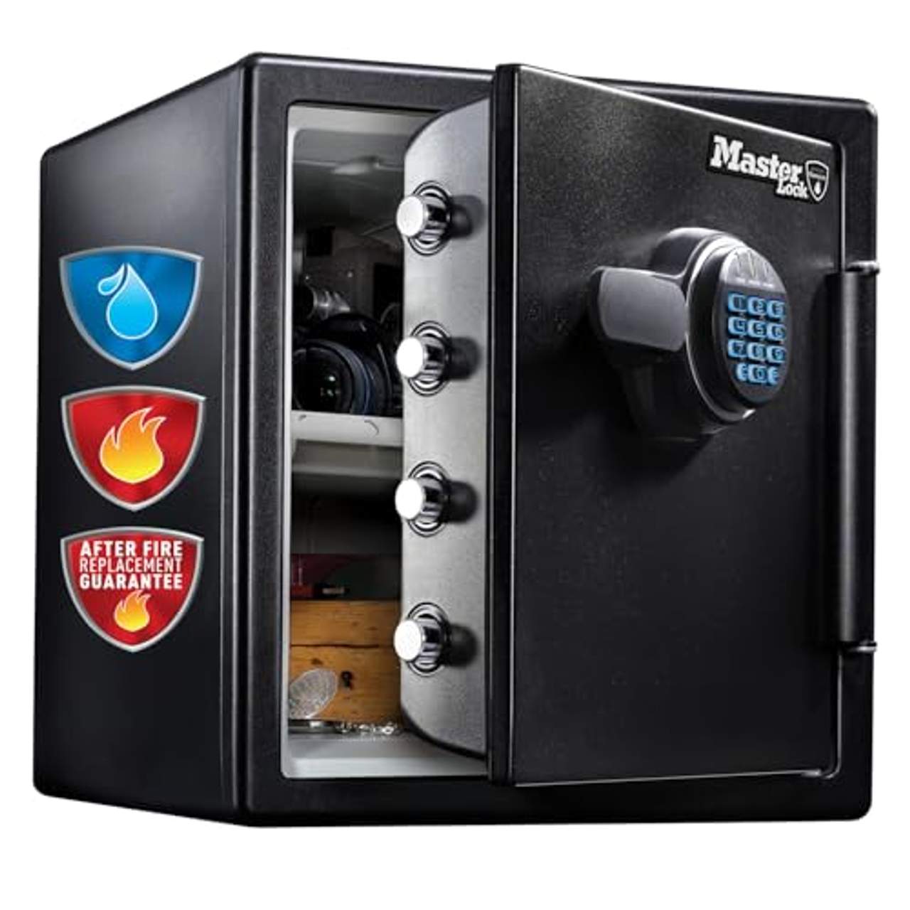 Master Lock TresorDer besonders große Master Lock Safe Nr. LFW123FTC mit digitaler Sicherheitskombination schützt Dokumente, digitale Medien und Wertsachen vor Feuer, Wasser und Diebstahl. Die 60 % größeren Bolzen (im Vergleich zu herkömmlichen Safes) und die aufbruchsichere Scharnierleiste bieten zusätzliche Sicherheit vor unbefugtem Zugriff.