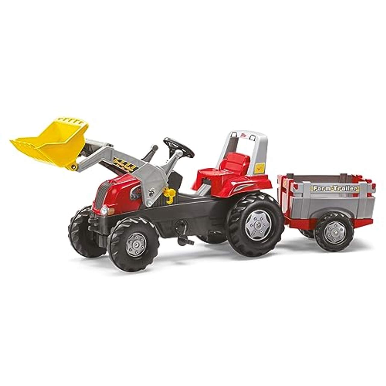 Rolly Toys 811397 rollyJunior RTMit diesem Gespann werden die Kleinen zu ganz Großen. Der Rolly Toys Trettraktor mit Anhänger bietet eine unglaubliche Vielfalt an Spielmöglichkeiten und Funktionen. Löcher schaufeln, den eigenen Hänger be- und entladen oder einfach das Transportgut sicher durch die Gegend fahren.Der Antrieb ist komplett integriert, geschützt und bietet eine einstellbare Kettenspannung. Die Motorhaube im Originaldesign ist aufklappbar. Der Frontlader ist voll funktionsfähig und leicht zu bedienen. Die Frontschaufel rastet beim Anheben automatisch ein, so dass beim Fahren nichts verloren geht.Für Komfort sorgen die Flüsterlaufreifen sowie ein verstellbarer Sitz. Details: mit Frontlader inkl. Anhänger Sitz verstellbar Überrollbügel Front- und Heckkupplung Motorhaube zu öffnen geschützter Kettenantrieb Kettenspannung einstellbar Flüsterlaufreifen Drehschemellenkung robuste Lenkstange Maße (LxBxH): 210 x 62 x 53 cm Gewicht: 13,6 kg