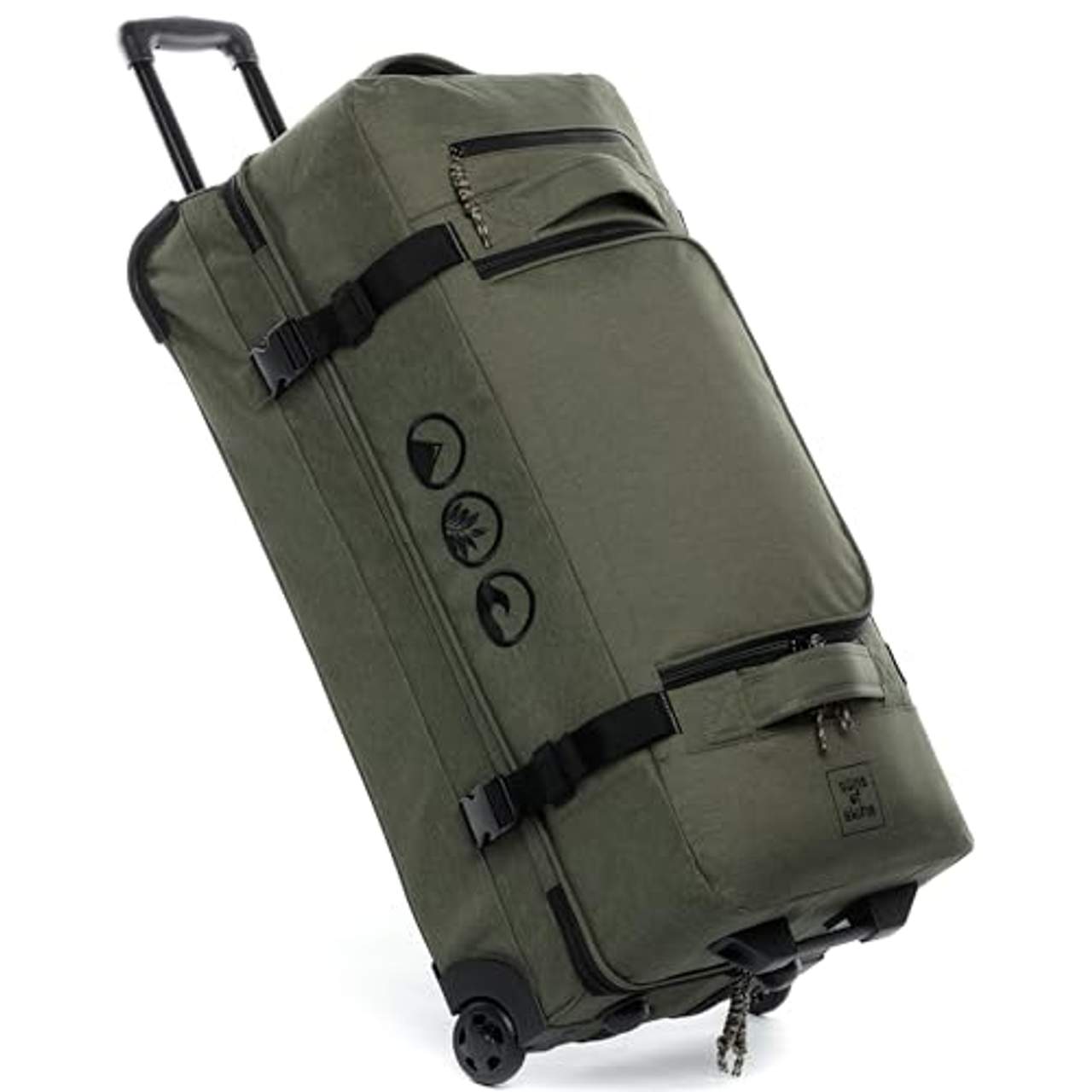 SONS OF ALOHA XL ReisetascheMit der SONS OF ALOHA Reisetasche kannst du die Welt entdecken. Bei Strandurlauben in der Karibik, Entdeckungsreisen in Asien oder Rundreisen in Amerika wird sie dir stets ein treuer Reisebegleiter sein!Diese Reisetasche mit Rollen ist ein verlässliches und preisgünstiges Gepäckstück, das vor allem durch die praktische Innenaufteilung besticht. Sie ist eine ausgezeichnete Alternative zu Roll-Rucksäcken und überzeugt durch ihre kompakten Maße, die dennoch viel Stauraum für alle Ihr Gepäck bieten.Ein Highlight der Reisetasche mit Rollen ist ihr detailverliebtes Design in cool-olive mit schwarzen Details.Maße:XL (120L): 80 x 38 x 34 cmXXL (140L): 80 x 43 x 38 cm