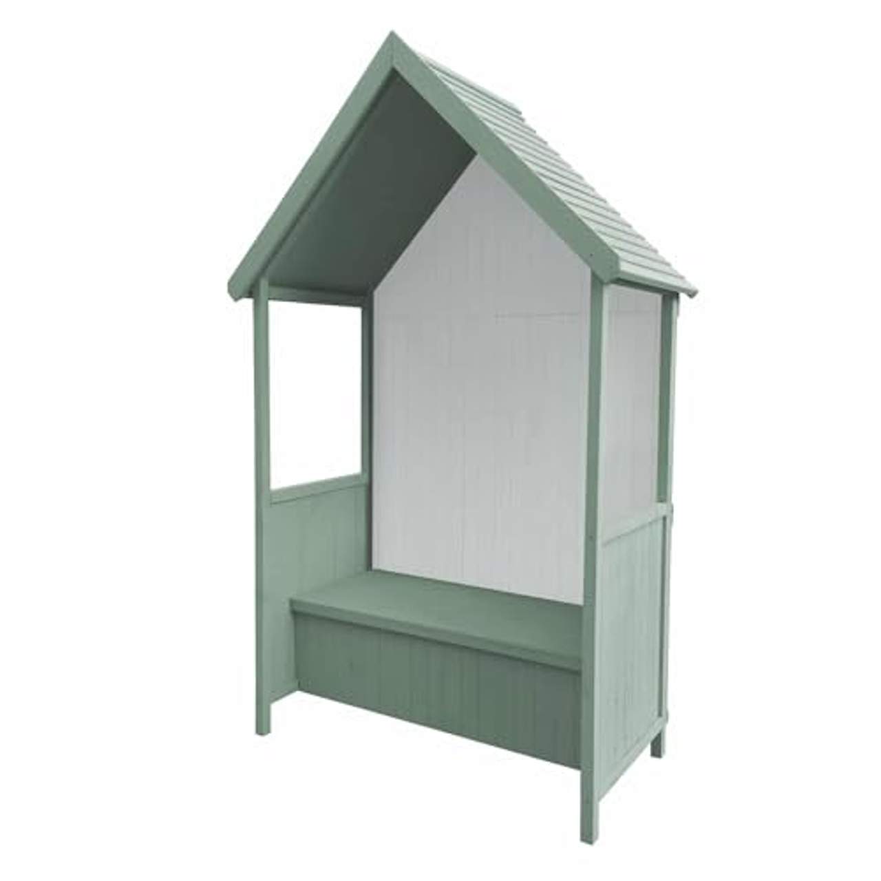 GARDIUN Markise Alice Green 75 x 137 x 223 cm aus HolzMarkise mit Bank und Holzkoffer für den Garten oder die Terrasse. Der Sitz hat einen Deckel mit einer Klappöffnung, die zu einem Stauraum wird. Dort können Sie Garten-, Pool- oder Spielzeugartikel lagern und schützen. Es besteht aus Holz mit einer robusten Struktur.Der Sitz hat eine Rückenlehne und ein vordachartiges Dach. Die Farbe ist grün. Hauptmerkmale: Größe: 75 x 137 x 223 cm. Gewicht: 43 kg Behandlung für den Außenbereich. . Grüne Farbe. Halten Sie Ihre Werkzeuge in Ordnung. . Bequemer Gartensitzplatz. . Wir empfehlen zusätzlichen Platz, da die Maße aufgrund der Beschaffenheit des Holzes nur ungefähr sind.
