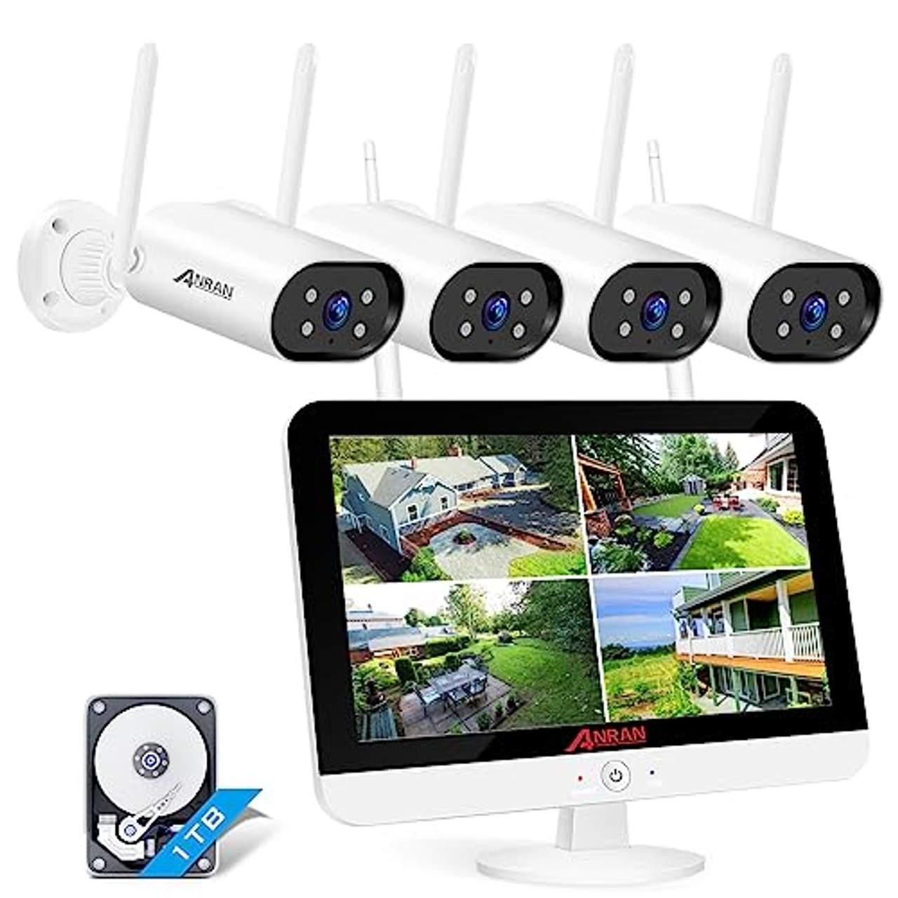 ANRAN 5MP Überwachungskamera Set Außen WLANInfo zu diesem Artikel [13 Zoll HD Monitor] Der NVR selbst ist ein 13-Zoll-HD-Monitor, der auch als Empfänger fungiert. Sie müssen nur alle Ihre Geräte an eine Stromquelle anschließen, und der Bildschirm erscheint klar und deutlich. Wenn Sie Ihren eigenen Monitor verwenden möchten, können Sie ihn auch über ein HDMI-Kabel anschließen.[24/7 Ununterbrochene Aufzeichnung] Die im Monitor eingebaute 1TB Festplatte ermöglicht dem gesamten System eine kontinuierliche Aufzeichnung von 24 Stunden am Tag. Und Sie können das Video jederzeit wiedergeben, sodass Sie keinen Moment verpassen. [Gegensprechfunktion] Die ANRAN Überwachungskamera verfügt über ein eingebautes Mikrofon, das sich an der Vorderseite der Kamera befindet. Dies ermöglicht eine klarere Tonaufnahme. Sie können nicht nur das Bild der Kamera sehen, sondern auch mit der Person sprechen, die vor der Kamera steht.[Einfache Installation] Die Installation dieses Überwachungskamera-Sets ist sehr einfach und alle Kameras sind bereits ab
