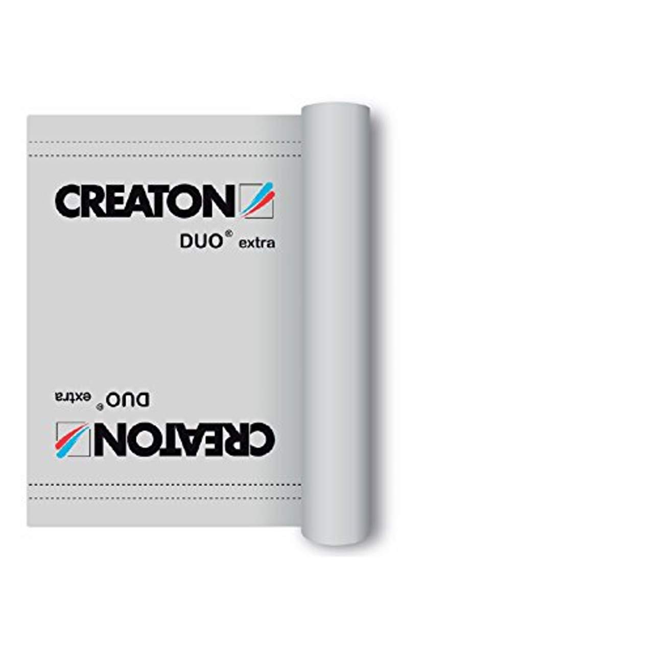 CREATON DUO extra SK 1,50x50m Unterspannbahn 150gCREATON DUO extra Die wirtschaftliche Unterspann- und Unterdeckbahn mit Selbstklebestreifen für hohe Ansprüche. Anwendungsbereiche: hinterlüftete Dachaufbauten diffusionsoffene Dachaufbauten Konstruktionen mit der Anforderung der Winddichtigkeit Produktbeschreibung 3-lagige diffusionsoffene Schalungsbahn mit mikroporösem Film und Gewebegitter Einsetzbar bei belüfteten und unbelüfteten Dachkonstruktionen als Unterspann-, Unterdeck- oder Schalungsbahn Einsetzbar als verklebte Unterdeckung auf Schalung oder formstabile Unterlage Zwei übereinanderliegende integrierte Selbstklebestreifen sorgen für eine wirtschaftliche und dauerhafte Verklebung der Längsnähte Technischen Daten Temperaturbeständigkeit:-40° bis +80° UV-Beständigkeit: 12 Wochen Freibewitterungszeit: 4 Wochen Dehnung (nach künstlicher Alterung) EN 12311-1: Längs: 55% Quer: 65% Widerstand gegen Reißen (Nagelschaft) EN 12310-1: Längs: 180 N Quer: 210 N Widerstand gegen Luftdurchdringung: < 0,005 m³/m² h 50 Pa Brandverhalten EN