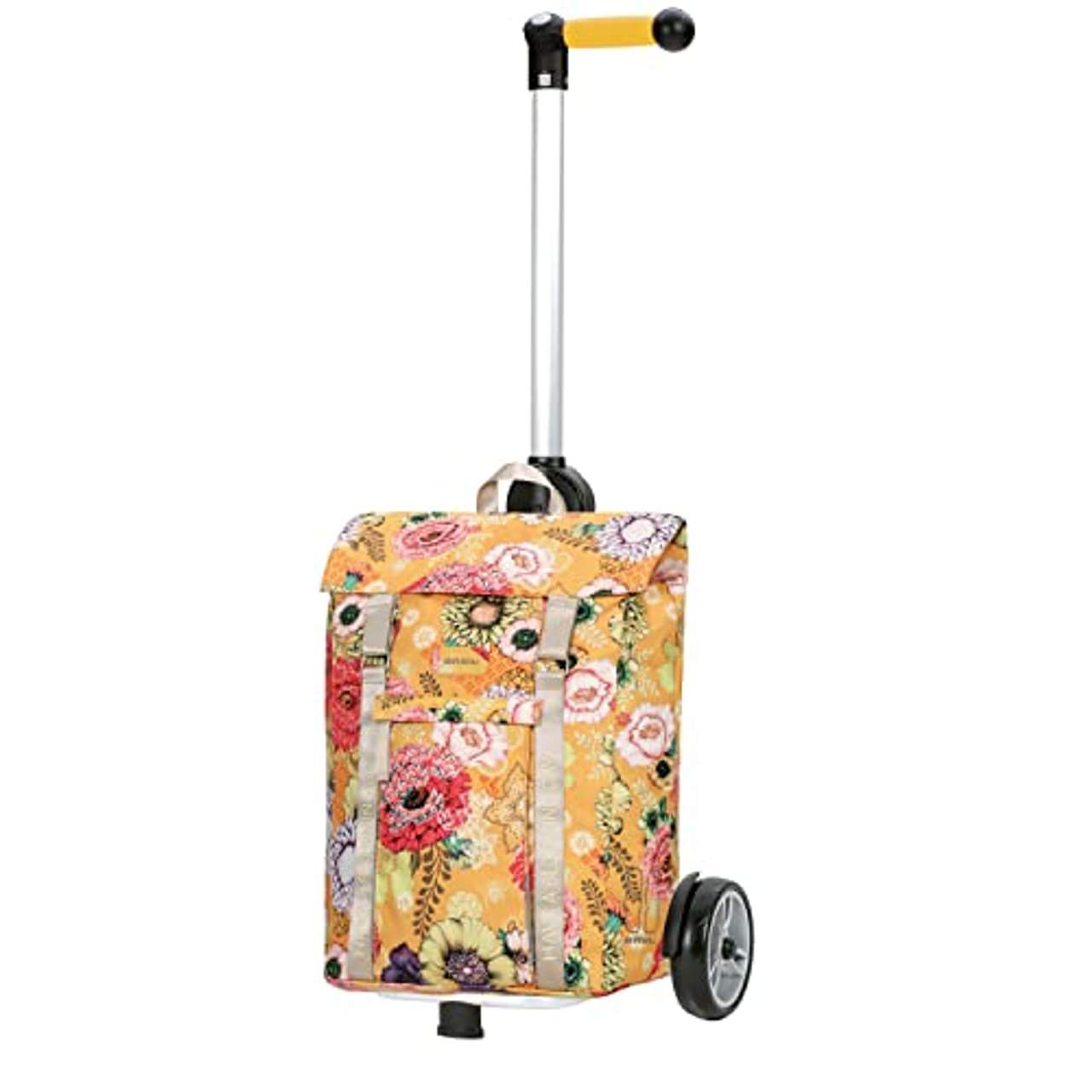 Andersen Shopper Unus Alu höhenverstellbarEigenschaften Fahrgestell: Höhenverstellbar Faltbarer Fuß 3-Wege-System Griff Als Fahrradanhänger einsetzbar Gestell aus Aluminium Kugellagerrad Leichtlaufräder Spurbreite: 48 cm Raddurchmesser: 17 cm Fahrgestell Höhe: 126 cm Gewicht Fahrgestell: 2,3 kg Fahrgestelltragkraft: 40 kg Größe Gestell: 37 cm x 21 cm HängFix Eigenschaften Tasche: Reflektoren Innentasche Wasserdicht Tasche leicht abnehmbar Volumen Tasche: 50 Liter Größe Tasche: 35 cm x 57 cm x 25 cm Gewicht Tasche: 1,1 kg Gesamtgewicht mit Fahrgestell: 3,4 kg Der Unus Shopper - entwickelt für höchste Ansprüche! Das stylische und funktionale klein zusammenlegbare Fahrgestell aus Aluminium mit dem ergonomischen 3-Wege-System Griff bietet Ihnen ein unvergleichliches Fahrerlebnis. Mit Haken zur Befestigung am Einkaufswagen. Stufenlose Höhenverstellung und 40 kg Tragkraft!Die leicht laufenden kugelgelagerten Flüsterräder mit 17 cm Durchmesser sorgen für zusätzlichen Komfort. Mit Zubehör auch als Fahradanhänger geeignet. Die wasserdichte Tasche Basil Bloom ist perfekt für Outdoor-Enthusiasten! Hergestellt aus recyceltem Material, inklusive praktischer Innentasche, ist sie der ideale Begleiter für Einkäufe oder bei Ausflügen.Shopper Manufaktur: Handgefertigt vom geraden Rohr bis zum fertigen Shopper. Entwickelt und hergestellt in Deutschland - Made in Germany. Jedes Produkt wird mit Liebe und Sorgfalt im norddeutschen Familienunternehmen hergestellt. Starker Kundendienst: 3 Jahre Garantie und umfangreicher Ersatzteilservice auch über die Garantie hinaus. Viele Ersatzteile bietet die ANDERSEN Shopper Manufaktur kostenlos an. Die Kundenzufriedenheit steht an erster Stelle. Fahrradanhänger: Vielseitigkeit pur! Mit der passenden Kupplung lassen sich zahlreiche Shopper im Handumdrehen in einen praktischen Fahrradanhänger verwandeln.Ein wahres Allround-Talent: Ideal für den täglichen Gebrauch, beim Einkaufen oder für Ausflüge. Eine echte Alternative zum Auto! Nachhaltigkeit: Nachhaltigkeit bedeutet Langlebigkeit, denn nachhaltig ist nur was lange hält. Hochwertige Fertigung in Deutschland, entwickelt für anspruchsvolle Anwendungen und lange Lebensdauer.Die Produkte der ANDERSEN Shopper Manufaktur bieten eine umweltfreundliche Lösung für langfristigen Nutzen.