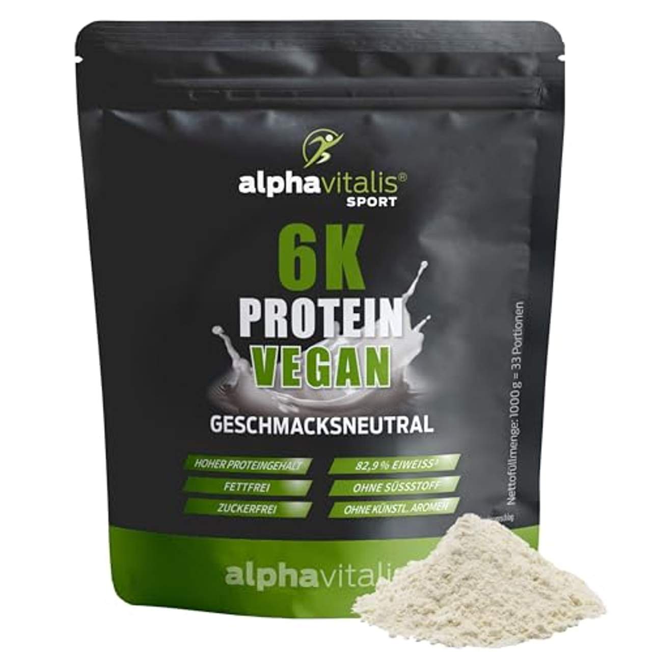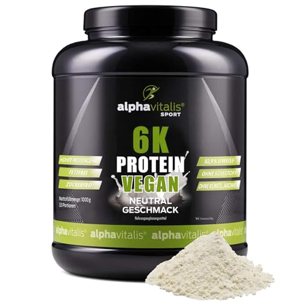 alphavitalis Proteinpulver Neutral VeganEntdecke das 6K Protein von alphavitalis, das vegane Mehrkomponentenprotein für höchste Ansprüche. Unser6K Proteinkombiniert gleich 6 der besten pflanzlichen Proteinquellen: Soja-Isolat, Weizenprotein, Erbsenprotein-Isolat, Reisprotein, Hanfsamenprotein und Sonnenblumenprotein. Diese Mischung garantiert ein vollständiges Aminosäure-Profil und einen hohen Eiweißgehalt; der perfekt für Muskelaufbau und -erhalt während der Diätphasen geeignet ist. alphavitalis 6K Protein bietet:Veganes Mehrkomponentenprotein: Hochwertige Proteine aus 6 pflanzlichen Quellen für ein vollwertiges Aminosäure-Profil Cremige Konsistenz: Super cremig und lecker - oder mit mehr Wasser zubereitet flüssiger Zuckerfrei und fettfrei: Geschmacksrichtung Neutral sogar ohne Süßstoff oder Aromen Hoher Eiweißgehalt: Unterstützt effektiv Muskelaufbau und Erhalt Key-Facts: Veganes Mehrkomponentenprotein: Enthält Proteine aus 6 pflanzlichen Quellen: Soja, Weizen, Erbsen, Reis, Hanfsamen, Sonnenblumen Hoher Proteingehalt zur Unterstützung von Muskelaufbau und Muskelerhalt Bietet ein vollständiges Aminosäure-Profil Zuckerfrei & Fettfrei Neutraler Geschmack: Geschmacksrichtung neutral ohne Süßstoff; natürlich auch zuckerfrei und fettfrei Ideal zum Kochen und Backen, auch anpassbar mit Flavour Drops. Überzeugende Qualität: Gute Löslichkeit und cremige Konsistenz. Vegan und laktosefrei
