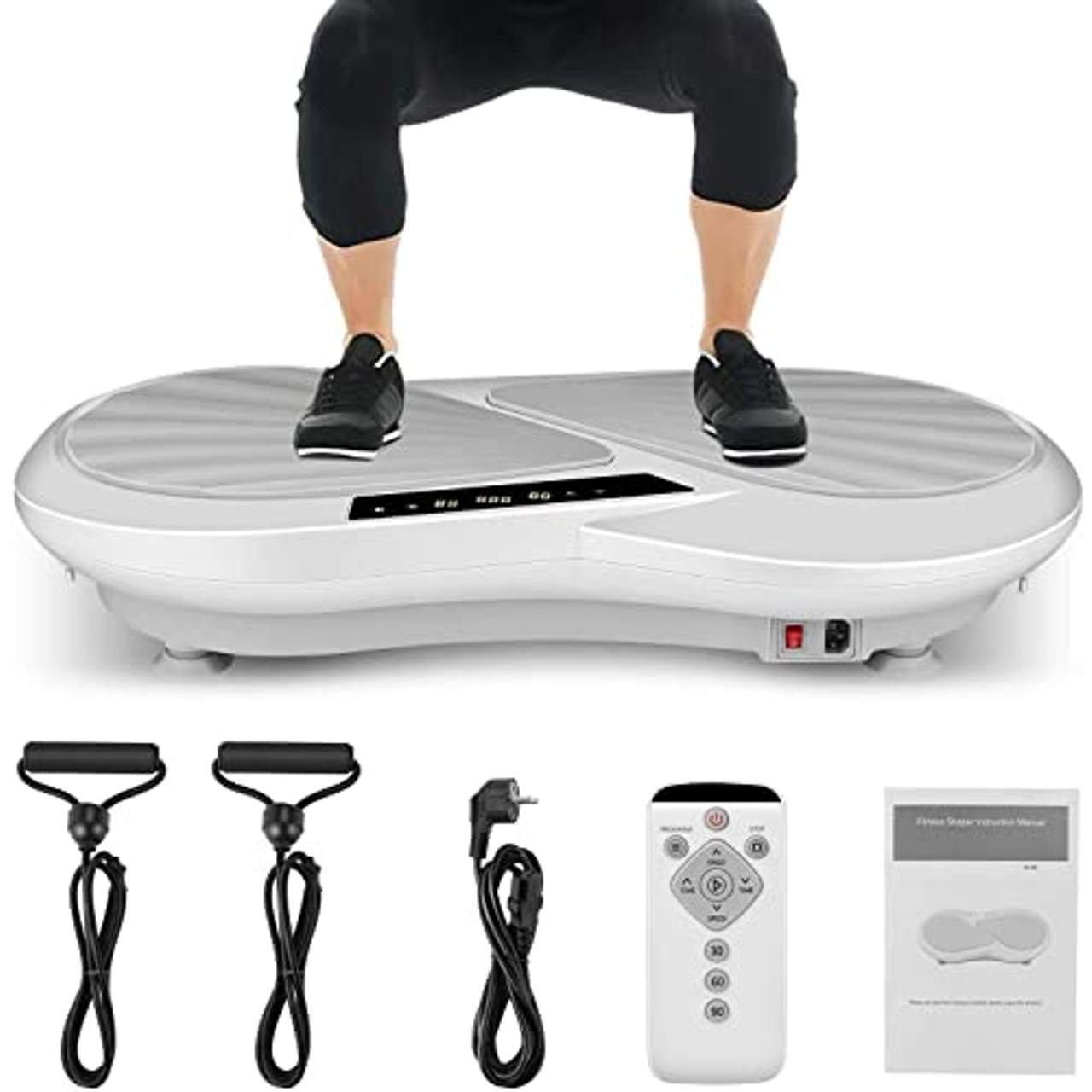 - LCD-Display und Fernbedienung: Die Fitness-Vibrationsplatte verfügt über ein helles LCD-Bedienfeld und eine kabellose Fernbedienung, mit der Sie Ihr Training verfolgen und den individuellen Trainingsmodus und die Zeit einstellen können. Im Lieferumfang sind außerdem Widerstandsbänder für den Ober- und Unterkörper enthalten.