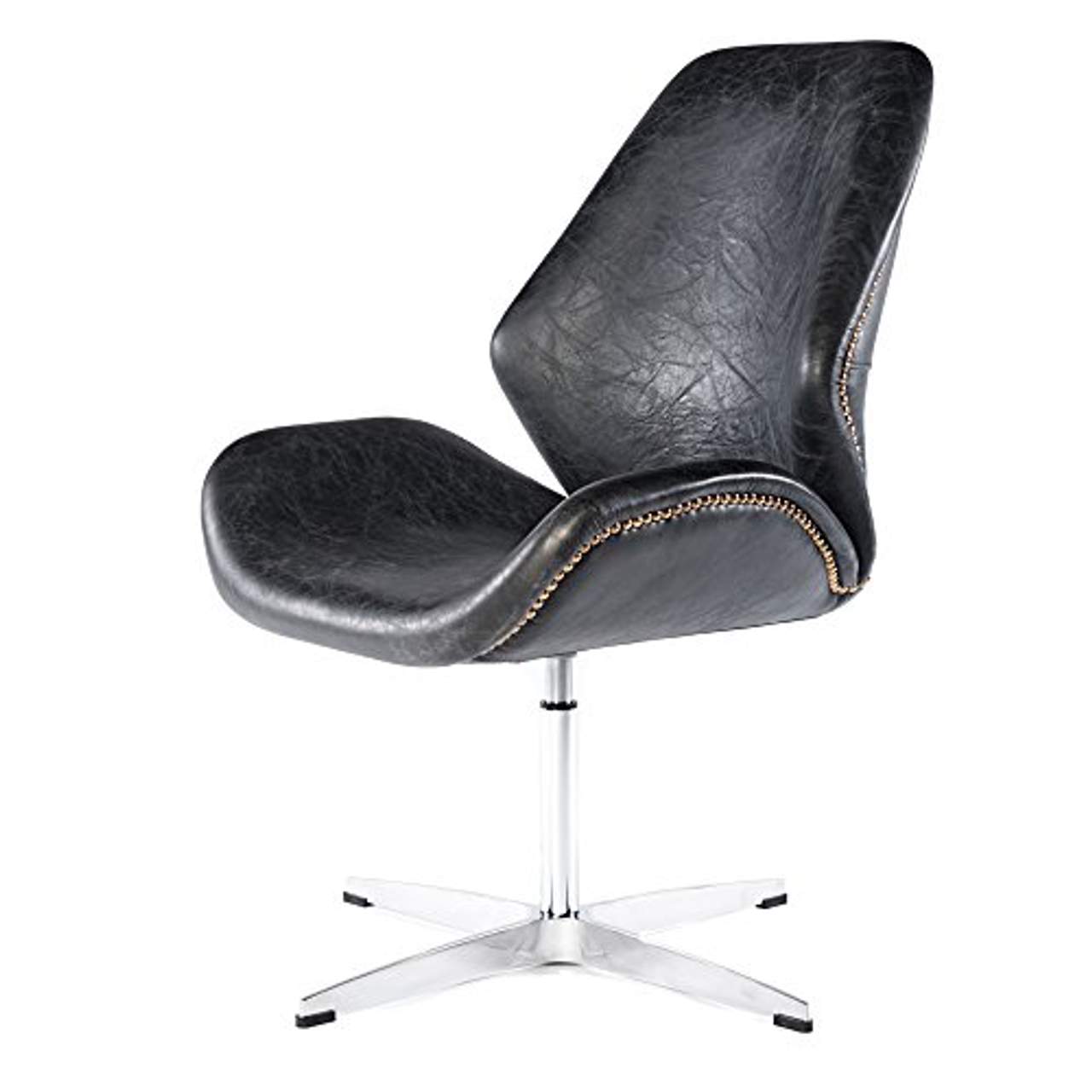 - Einzigartiges Design: Dieses Produkt zeichnet sich durch ein einzigartiges Design aus, das sich von der Masse abhebt. Er hat eine schwarze Lederoberfläche mit Nietenbesatz und ein Vintage-Drehsessel-Design, das in jedem Wohnzimmer ein Blickfang ist.
