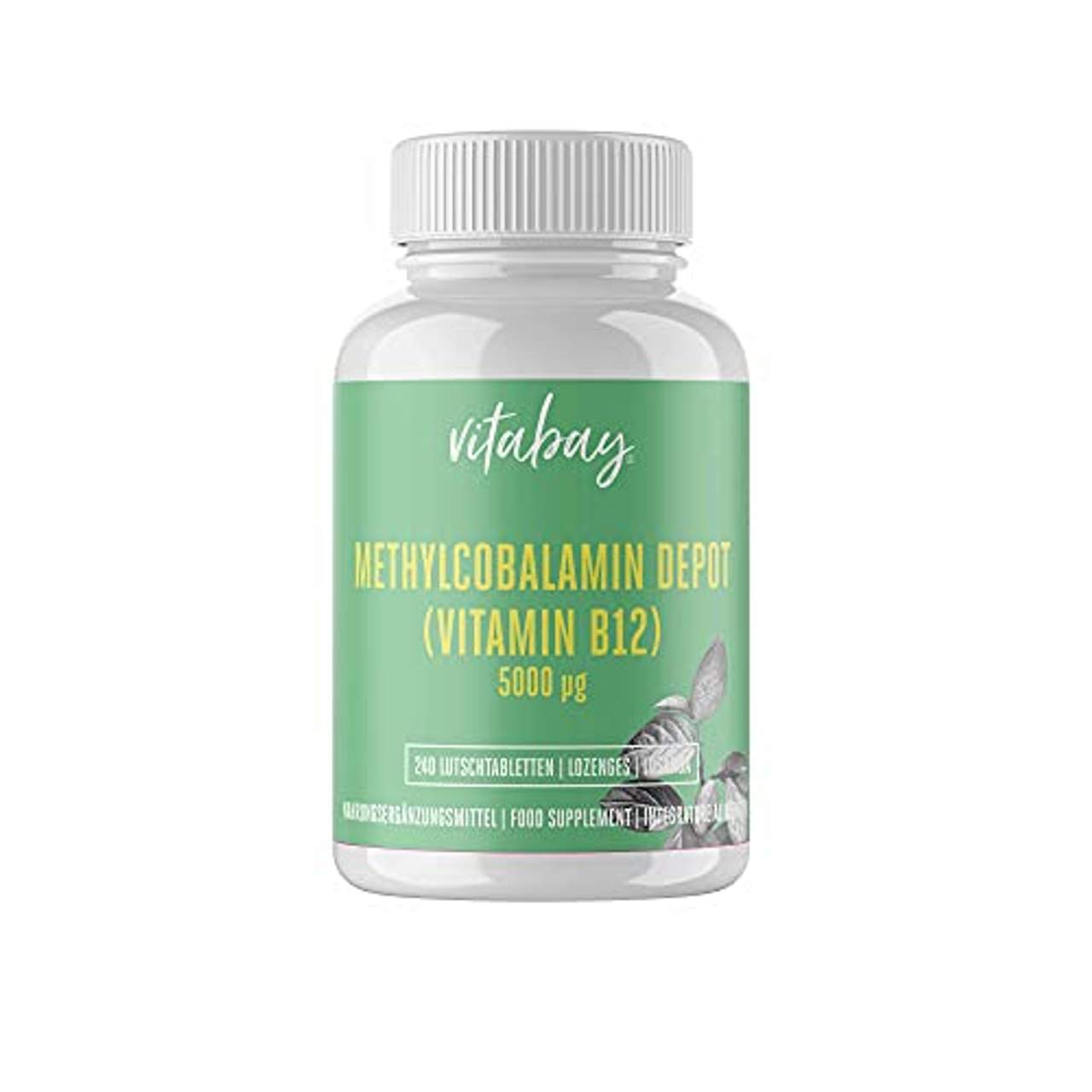 Vitabay Vitamin B12 Depot 5000 mcgVitamin B12 Hochdosiert || Enthält 5000 mcg je Tablette. Vitamin B12 trägt zur Verringerung von Müdigkeit und Ermüdung, zur normalen psychischen Funktion und zu einer normalen Funktion des Immunsystems bei. Besondere Formel || Unser Vitamin B12 liegt bereits in der aktiven Coenzym-Form vor. Diese kann dem Stoffwechsel des Körpers ohne vorherige Umwandlung direkt zugeführt werden. 100% Rein & Vegan || Die verwendeten Substanzen werden einzeln geprüft und sind frei von Schwermetallbelastungen und mikrobiellen Verunreinigungen. Selbstverständlich auch für Veganer geeignet. Markenqualität || Die Herstellung unterliegt umfangreichen Kontrollen, wodurch eine geprüfte Qualität sowie Reinheit gewährleistet wird. Die Rohstoffe werden nach international anerkannten Qualitätsnormen verarbeitet. Unser Ziel || Das hochwertigste Vitamin B12 herzustellen. Unsere 20-jährige Erfahrung ermöglicht eine einzigartige, schonende Herstellung für eine maximale Wirksamkeit - Für den Körper nur das Beste.