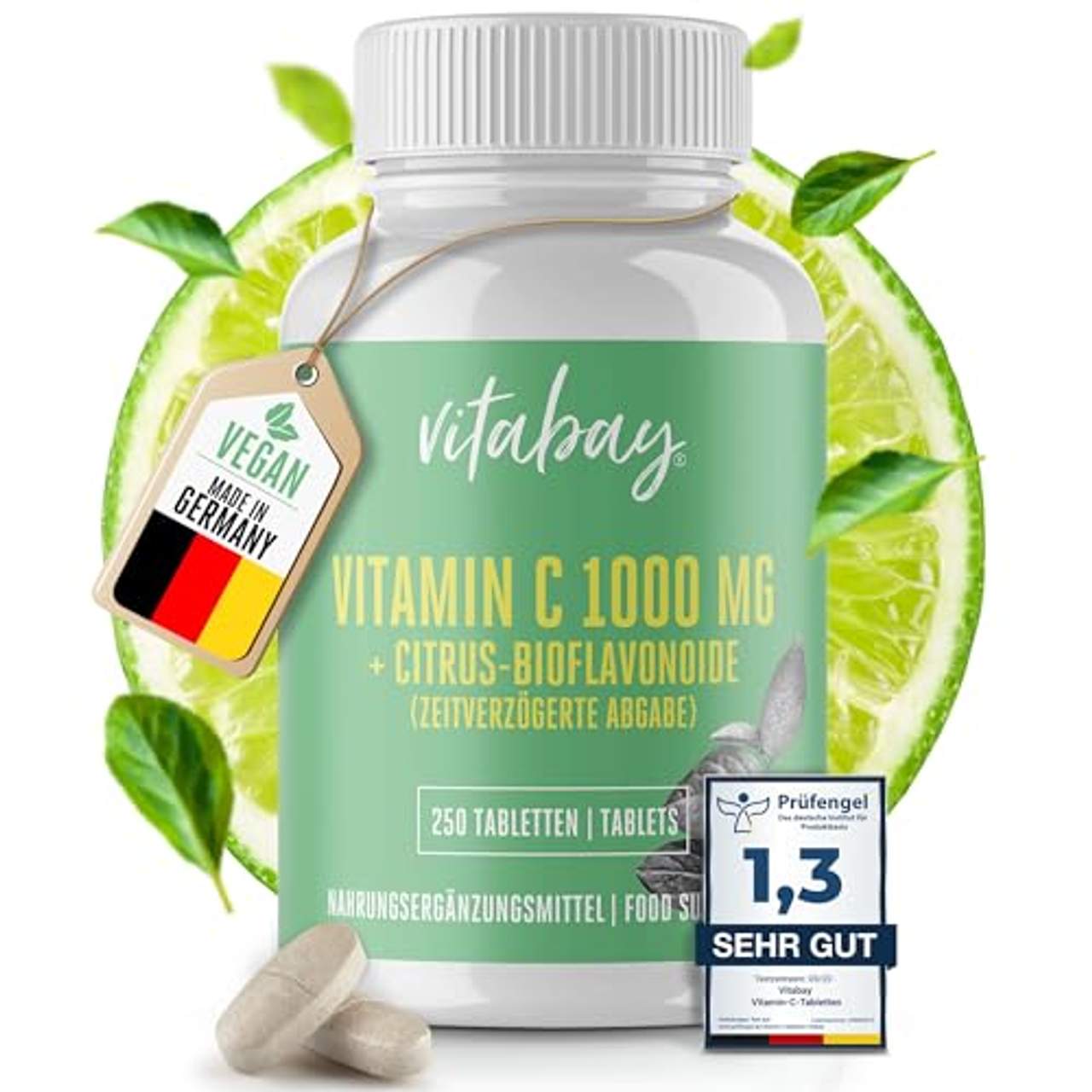 Bei unserer Recherche für den aktuellen Vitamin C Vergleich 2025 haben wir natürlich das Vitabay Vitamin C Bioflavonoide 1000 mg untersucht. Dabei schnitt dieses Produkt Gut ab: das Vitamin C erreichte den 11. Platz mit einer Note von 1,6.