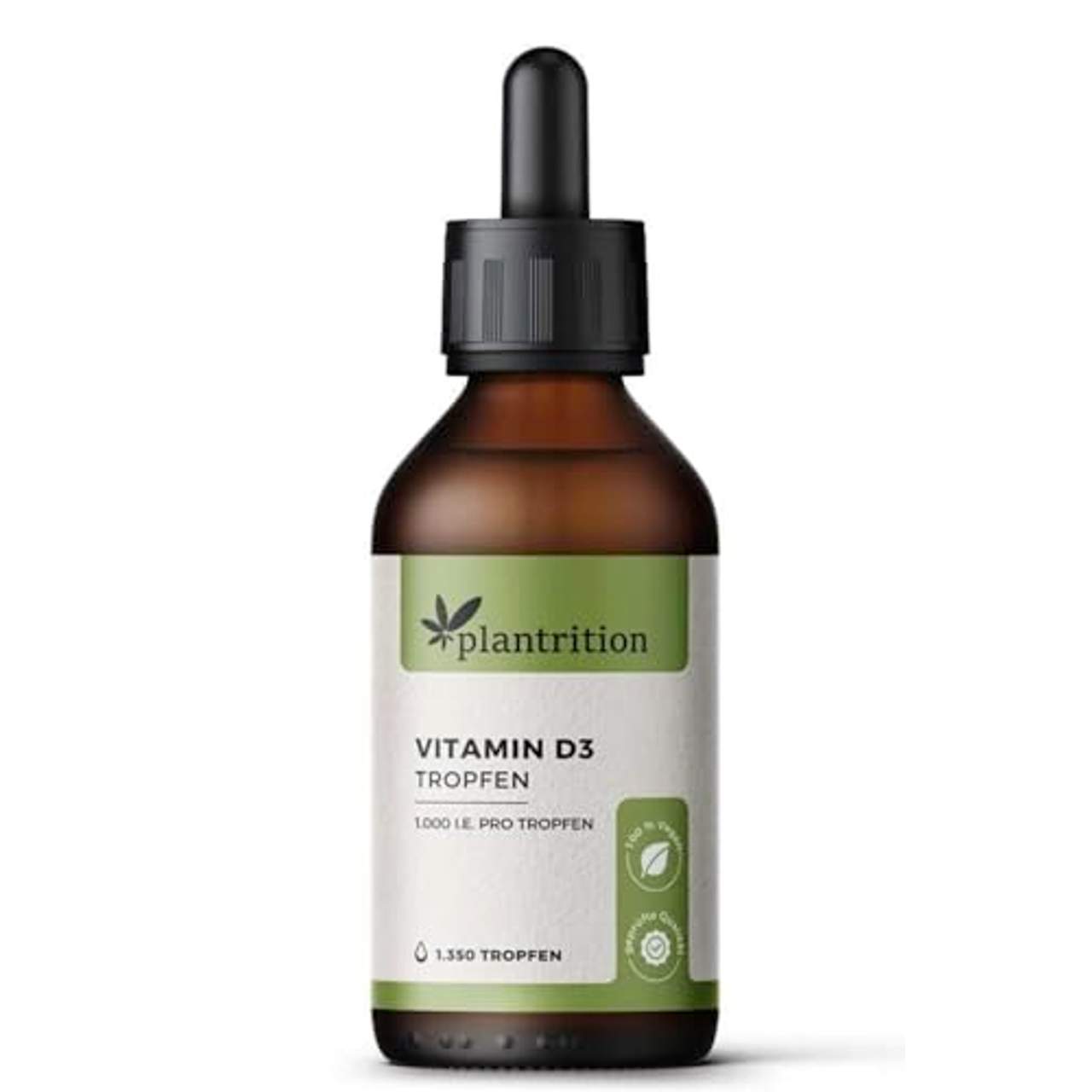 plantrition Vitamin D3 Tropfen Vegan 1000 I.EVitamin D3 Tropfen Vegan aus Flechten mit 1.000 I.e.- 25 µg pro Tropfen (Cholecalciferol) mit hochwertigen MCT Öl auf Kokosbasis. Vitamin D Öl mit 1350 Tropfen in einer hochwertigen Glasflasche inkl Pipette aus Naturkautschuk Hochdosiert & Frei VON Zusatzstoffen: Vitamin D Tropfen von Plantrition (1.000 I.e. pro Tropfen) ideale Dosierung durch die Pipettenflasche (Glas) Vitamin D3 ÖL von Plantrition trägt zu einer normalen Funktion des Immunsystems und der Muskelfunktion bei Bessere Bioverfügbarkeit: Das natürliche Vitamin D3 Tropfen von Plantrition wird in einem besonderen Verfahren in MCT Öl (Kokosbasis) gelöst und kann so besser vom Körper aufgenommen werden.Premium Qualität & 100% Zufriedenheitsgarantie. Für Vegetarier, Veganer und Allergiker geeignet, frei von tierischen Inhaltsstoffen, Glutenfrei, Laktosefrei. Unser Vitamin D3 wird in Deutschland nach höchsten Qualitätsstandards produziert