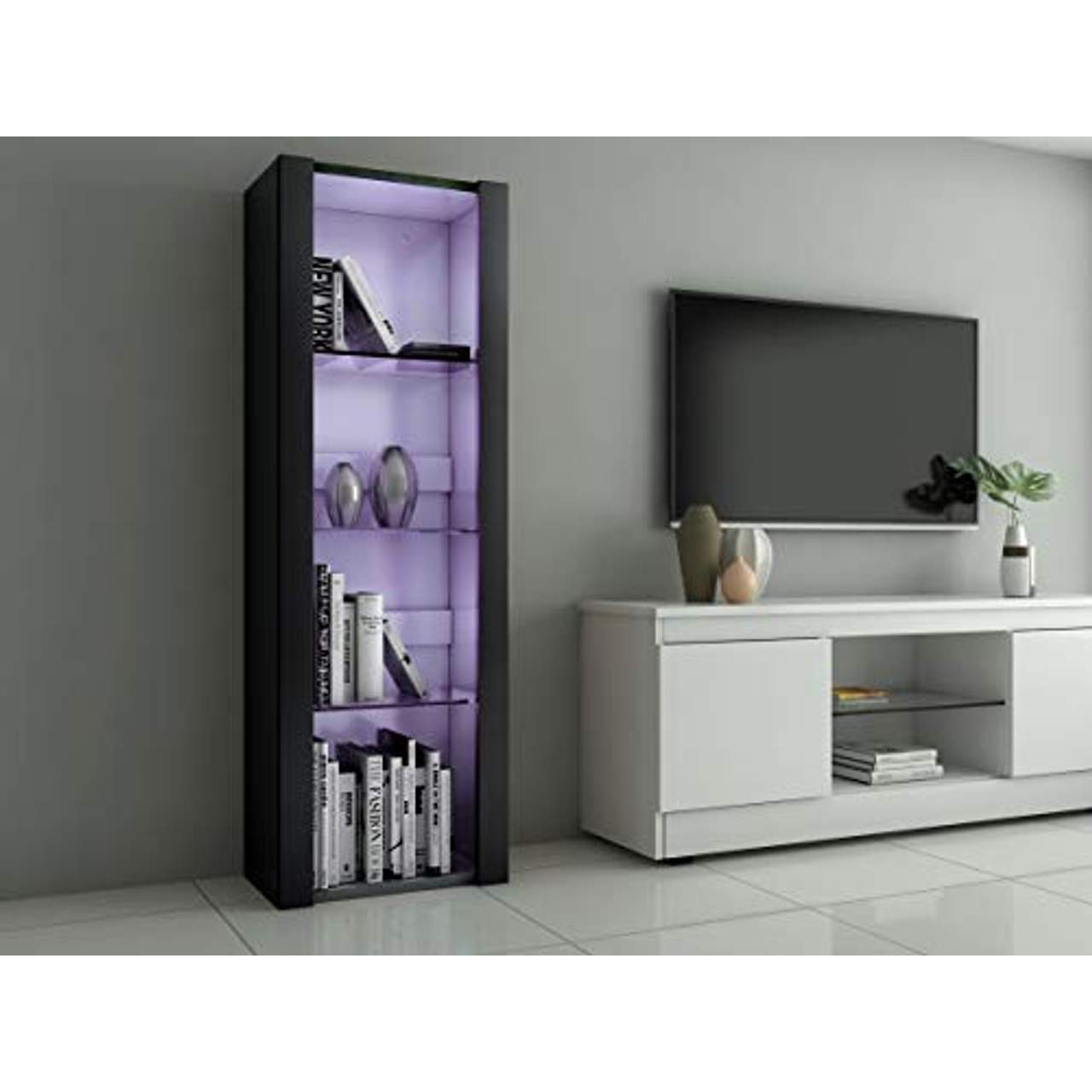 Die Panana Vitrine mit LED-Lichtern ist aus langlebigen Materialien wie MDF (Medium-Density Fiberboard) und laminierten Spanplatten gefertigt. Die Frontplatten sind hochglanzpoliert und verleihen der Vitrine einen eleganten Touch.