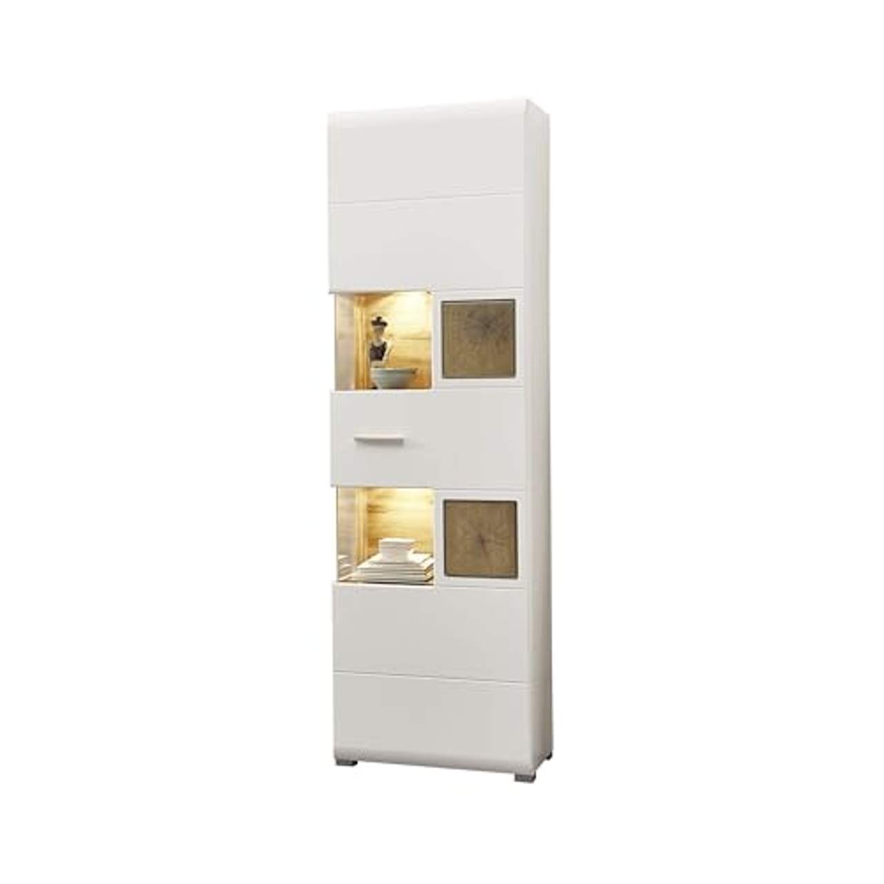 - Blickfang: Diese Vitrine ist ein echter Blickfang in jedem Wohnraum und schafft mit ihrer warmen LED-Beleuchtung eine gemütliche Atmosphäre.