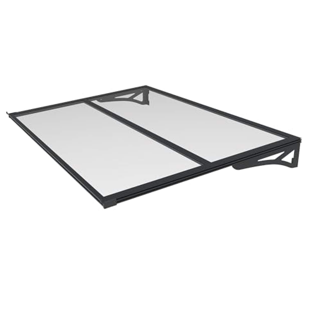 Für die Konstruktion dieser Überdachung werden hochwertige Materialien verwendet, die für Langlebigkeit und Leistung sorgen. Die robusten Aluminiumhalterungen wurden zum Schutz vor Korrosion beschichtet, um eine lange Lebensdauer auch unter schwierigen Außenbedingungen zu gewährleisten. Das Vordach selbst besteht aus einer soliden, 3 mm dicken Polycarbonatplatte, die nicht nur stabil ist, sondern auch für klare Sicht sorgt.
