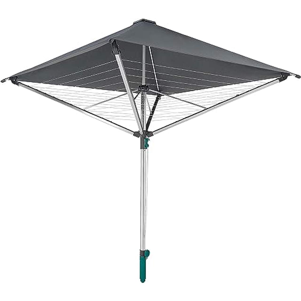 - Verlängerte Trocknungssaison im Freien: Der Wäscheständer verlängert die Trockenzeit im Freien von Frühling bis Herbst und ähnelt im zusammengeklappten Zustand einem Sonnenschirm. Das sorgt dafür, dass Ihre Wäsche fast das ganze Jahr über frisch riecht.