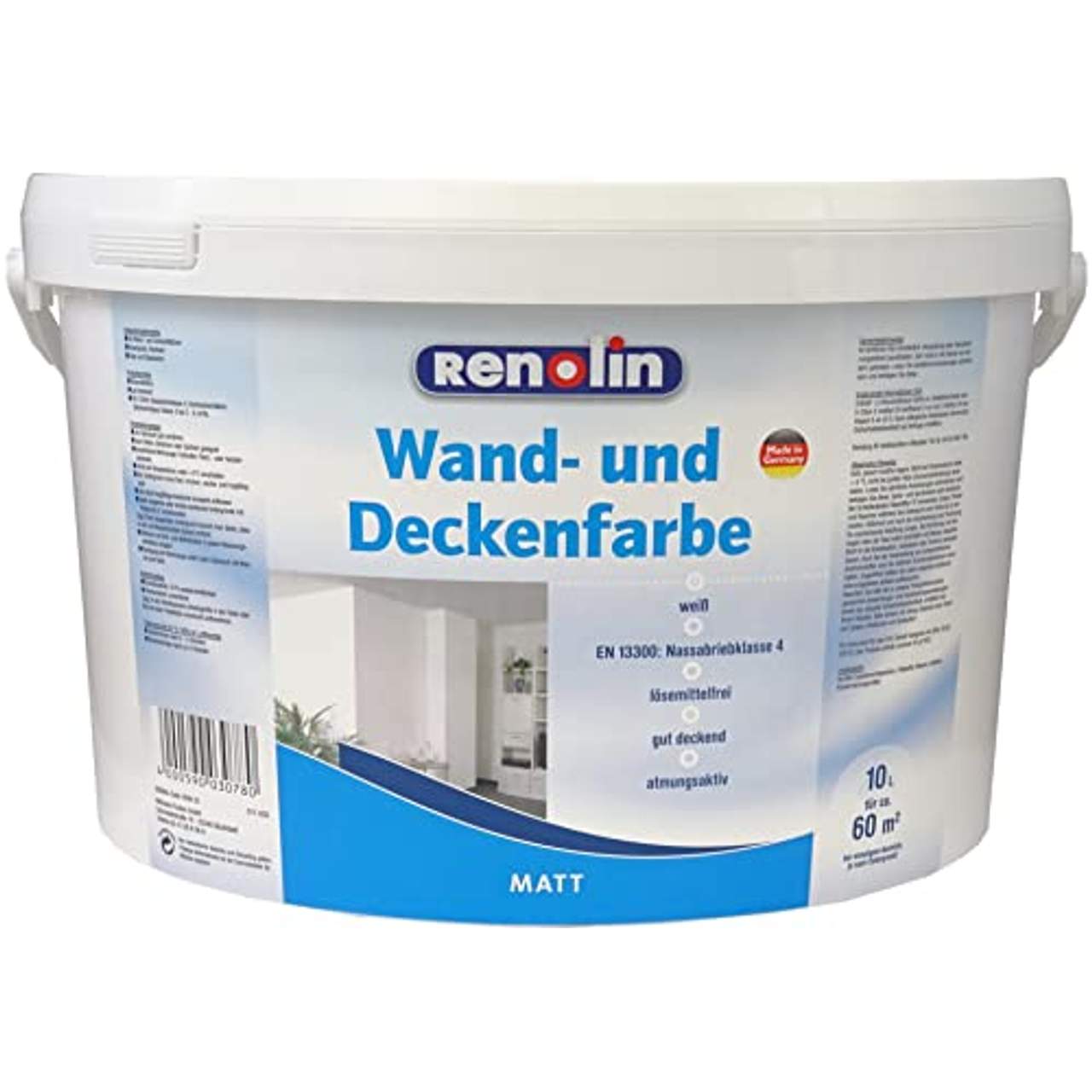 Innenwandfarbe Renolin Wandfarbe weiss 10lRenolin Wand- und Deckenfarbe Weiß 10 L lösungsmittelfrei für innen atmungsaktiv weiß für Wand und Decke hohes Deckvermögen Farbe: Weiß Inhalt: 10 L lösungsmittelfrei für innen atmungsaktiv weiß für Wand und Decke hohes Deckvermögen