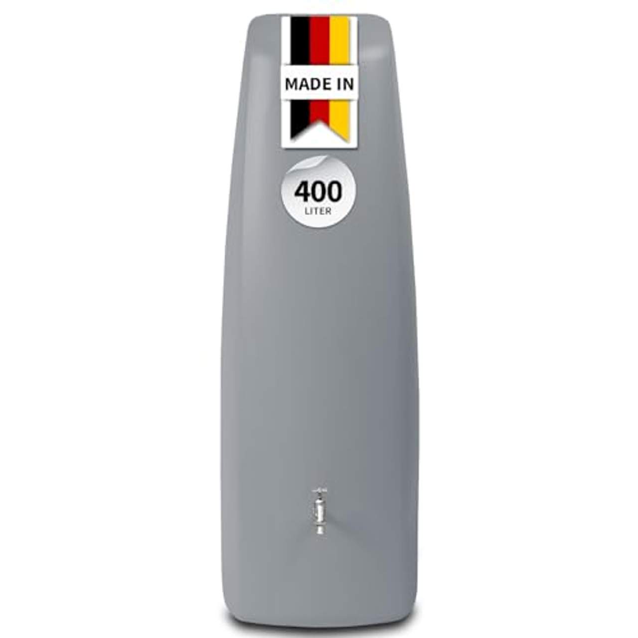 Elegance Wandtank 400 L* Der Behälter verfügt über zwei integrierte Kunststoffgewinde (Auslaufhahn nicht im Lieferumfang) * Zusätzlicher Komfortanschluss für die Wasserentnahme mit dem Universal-Schlauchset (nicht im Lieferumfang) oder zur Restentleerung vor der Frostperiode * UV-stabiler und witterungsbeständiger Kunststoff-Behälter für eine lange Lebensdauer * Behältermaterial zu 100 % recycelbar * Kindersicher durch geschlossene Behälterform * Material: PE (Kunststoff) Maße: * Inhalt: 400 Liter * Breite: 60 cm * Tiefe: 60 cm * Höhe 180 cm * Gewicht: 18kg Trinkwasser ist ein teures Gut viel zu kostbar, um es für die Bewässerung der Pflanzen zu verwenden. Die Regenwassernutzung ist hier eine echte Alternative, denn für Pflanzen gibt es kein besseres Gießwasser als Regenwasser. Sauber, weich und wohltemperiert fällt es kostenlos vom Himmel.Kaltem und oft hartem Leitungs- und Grundwasser ist es damit deutlich überlegen. Regenwasserbehälter gehören deshalb in immer mehr Gärten zum Standard. Der 2 in 1 Regenspeicher von GARANTIA s