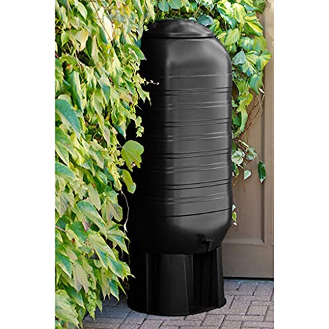 XXL Regentonne aus KunststoffRegentonne / Wassertonne aus robustem und UV- und witterungsbeständigem Kunststoff (PP). Ausgestattet mit einem Fassungsvermögen von bis zu max. 250 Liter. Super praktisch: Diese Regentonne wird mit einem aus drei Teilen zusammensteckbaren Stand geliefert sowie mit einem praktischen Befüllsystem.Mit dem Set können Sie die Wassertonne im Handumdrehen an gängige Fallrohre (bis 9 cm) anschließen. Darüber hinaus kommt jede Wassertonne bereits mit einem 3/4 Zoll Anschluss (Gewinde) für den mitgelieferten Wasserhahn (im unteren Bereich, s. Foto). Der Zukauf von zumeist sehr teuren Zubehörartikeln entfällt somit und die Regentonne ist direkt Einsatzbereit. Trotz des hohen Volumens von 250 Litern ist die Tonne schlank und neutral in der Optik gehalten.Somit passt Sie gut in den Garten, wirkt optisch nicht zu aufdringlich und ist äußerst praktisch und funktional!
