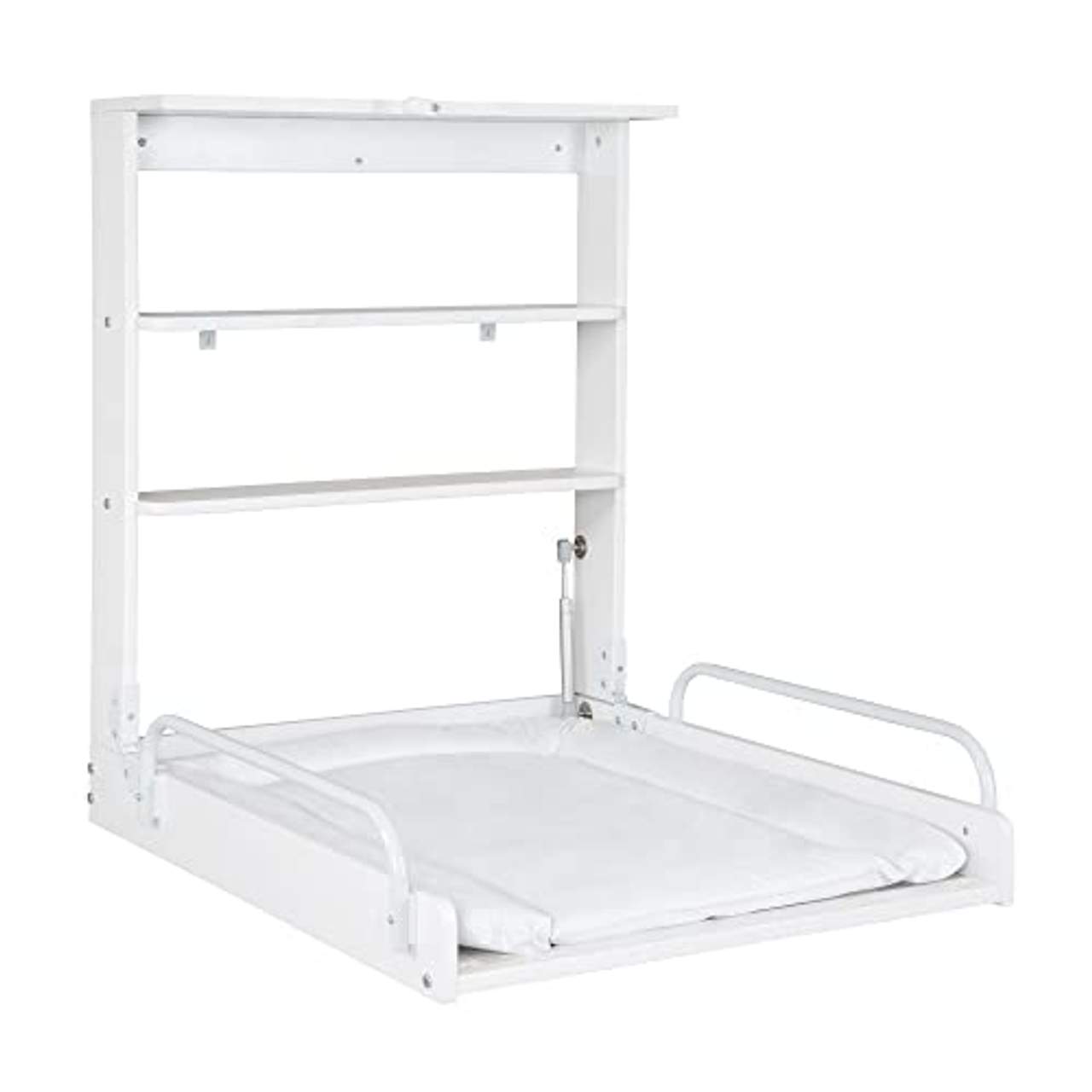 - Platzsparendes Design: Das faltbare Wickelregal ist mit seinen zwei Ablagen und den schlanken Maßen platzsparend und praktisch zugleich, so dass Sie auch bei hochgeklappter Wickelplatte das Nötigste problemlos verstauen können.