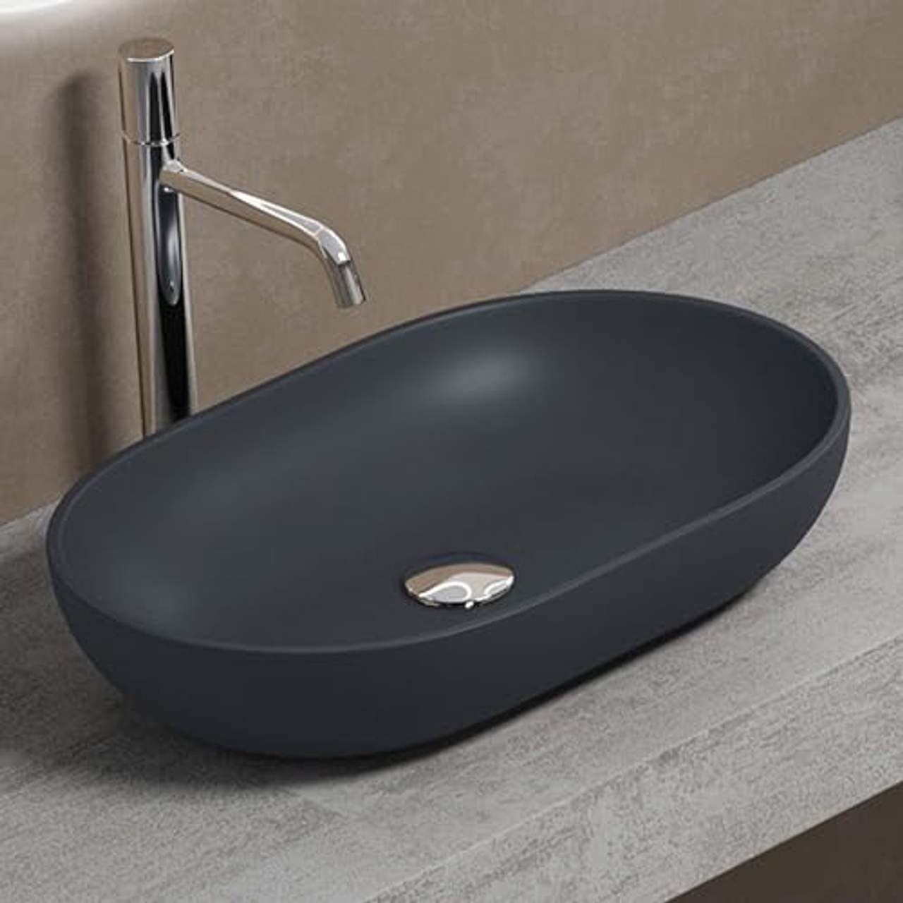 - Elegantes Design: Mit seiner ovalen Form und der matten anthrazitfarbenen Oberfläche verleiht dieses Produkt jedem Badezimmer oder Küchenbereich ein stilvolles und modernes Aussehen.