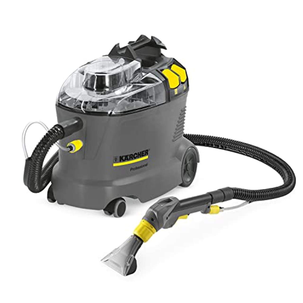 Das Kärcher Puzzi 8/1 C Sprühextraktionsgerät wird mit verschiedenen Zubehörteilen geliefert, wie einem Sprühschlauch mit integrierter Wasserzufuhr (2,5 Meter), einer Polsterdüse und einem Handgerät für die Tiefenreinigung von Autoinnenräumen und Möbelpolstern. Das Handdüsen-Zubehör wirkt Wunder bei der Entfernung von Flecken auf verschiedenen Arten von Oberflächen und liefert bei richtiger Anwendung hervorragende Ergebnisse.