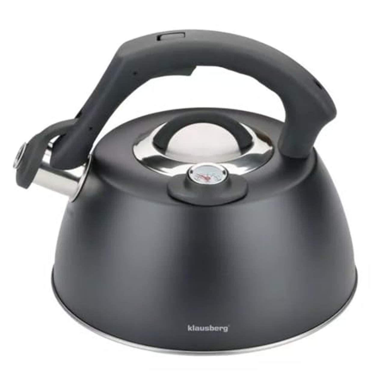 Klausberg Flötenkessel Wasserkessel 3.0L- Gefertigt aus qualitativ hochwertigem rostfreiem Stahl - Wasserkocher mit dem Temperatursensor (Thermometer) - Für jede Herdart geeignet (Gas, Strom, Halogen, Induktion) - Der integriert Pfeifton signalisiert, dass das Wasser kocht - Griff mit Silikonüberzug, nicht erwärmt, schwarz, - Speziell für den einfachen Einsatz entworfen - Ausführung: glänzend, - Farbe: Schwarz, - Fassungsvermögen: 3,0 l