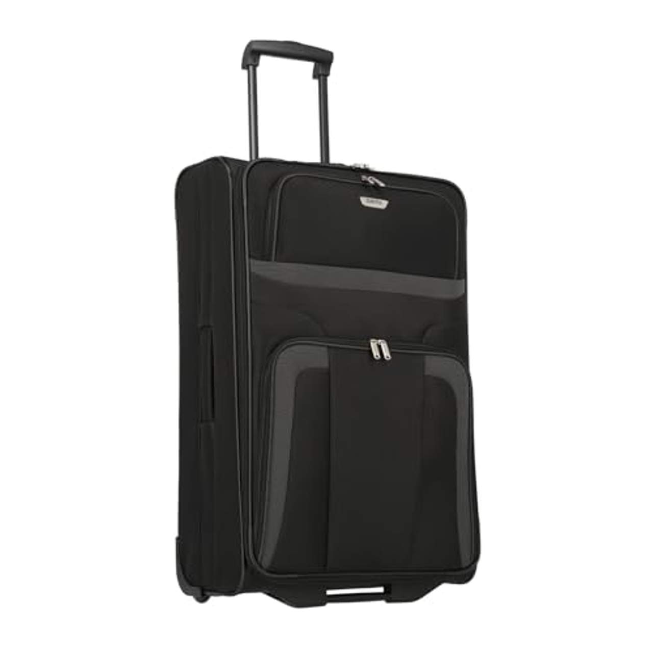paklite 2-Rad Koffer Größe Ltravelite Trolley mit zwei leisen RollenDaten Trolley:Maße geschlossen: Breite ca. 47 cm, Höhe ca. 73 cm, Tiefe ca. 26 cmMaße offen: Breite ca. 95 cm, Höhe ca. 73 cm, Tiefe ca. 14 cmTeleskop Trolleysystem verstellbar, fixierbar:ca. 0 cm - ca. 35 cmGewicht: ca. 4100 gVolumen: ca. 80 lFarbe: Black (schwarz)Auf der Oberseite 1 Tragegriff gepolstert: ca. 17 cmAuf der linken Seite 1 Tragegriff gepolstert: ca. 17 cmMaterial: 100% PolyesterLieferumfang: travelite Trolley mit Etikett, Schloss, 2 x SchlüsselAusstattung Trolley:Trolley wird mit abschließbarem Two Way Zipper geschlossenIm Hauptfach 2 Kompressionsriemen mit verstellbarem Clipverschluss, 1 Zipperfach, 2 elastische Einschubfächer und 1 Netz-ZipperfachAuf der Vorderseite 1 Zipperfach mit Two Way ZipperAußerdem auf der Vorderseite 1 Zipperfach, in dem sich 1 Einschubfach mit Klettverschluss, 3 Stiftehalter, 1 Schlaufe mit Clipverschluss und 3 Fächer für Kreditkarten, EC Karten, Visitenkarten etc. befindetAuf der Rückseite 1 NamensschildMit leisen Rollen und fester Bodenplatte ausgestattetMit verstärkten Kanten, vielseitigen Trageoptionen und weiter Öffnung ausgestattetIst groß genug für DIN A4Mit separatem Schloss mit Schlüssel ausgestattetBesitzt 2 RollenDas travelite Logo ist gut sichtbar eingearbeitettravelite Orlando 2W Trolley L - Ein Trolley im tollen DesignIn diesem robusten Trolley kommt so einiges an Gepäck unter. Dank vieler Kompressionsriemen kann Ihre Kleidung aber wunderbar fixiert werden. Die zwei leisen Rollen lassen den Trolley still und heimlich hinter Ihnen hergleiten.Die Marke travelite steht bereits seit Jahren für ein bedenkenloses Reisen und möchten Ihnen das mit diesem Trolley beweißen. Überzeugen auch Sie sich von diesem travelite Orlando 2W Trolley Trolley L und freuen Sie sich auf ein entspanntes Reisen!