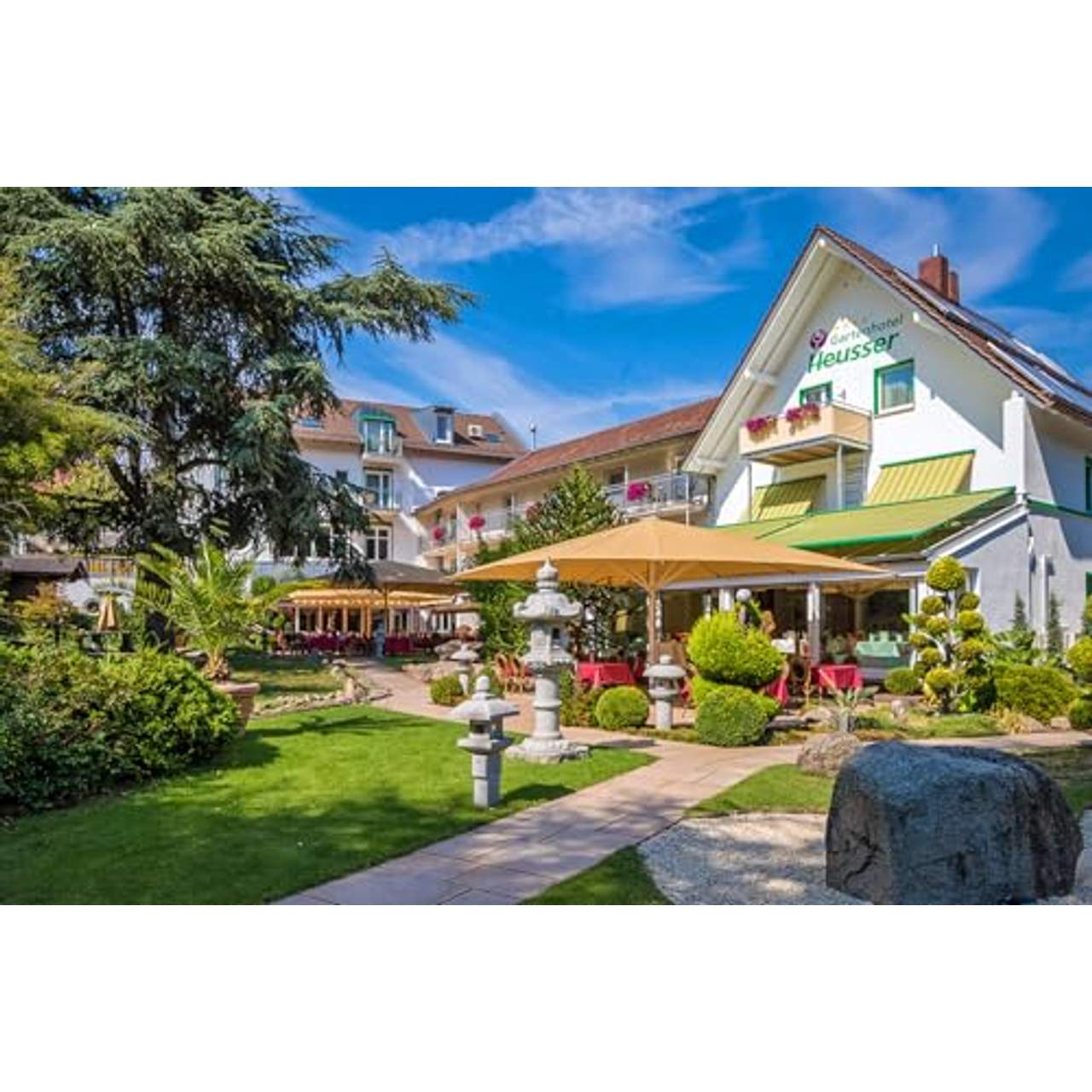 3-tägiger Aufenthalt im 4**** Gartenhotel Heusser 2 Übernachtungen im Komfort-Doppelzimmer 2 x reichhaltiges Frühstücksbuffet 2 x Abendessen vom Buffet 2 x süße und salzige Snacks an der Wellnessbar Begrüßungssekt Je 15? Wertgutschein anrechenbar auf Massagen und Anwendungen