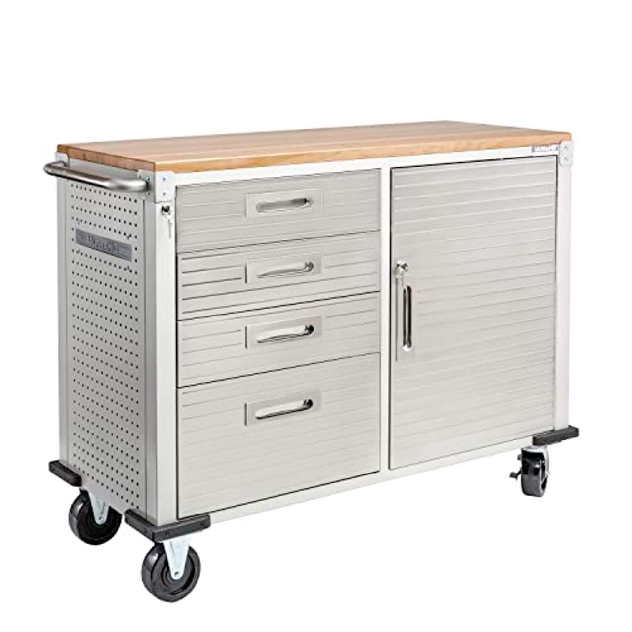- Sicherheitsmerkmale: Die mobile Werkbank von Seville Classics verfügt über eine abschließbare Tür (1-Schlüssel-Gesamtverriegelung) aus rostfreiem Stahl mit magnetischer Türaufhängung, die zusätzliche Sicherheit bietet, um Ihre Werkzeuge vor Diebstahl oder Beschädigung zu schützen.