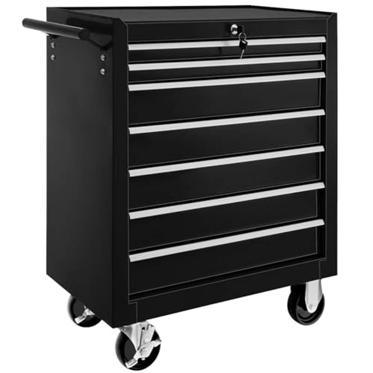 TecTake Werkzeugwagen WerkstattwagenMit dem TecTake Werkzeugwagen finden Werkzeuge ihren Platz - und Sie diese wieder! Der Werkzeugwagen hat sieben große und zudem abschließbare, kugelgelagerte Schubladen. Egal ob in der Hobby- oder Profiwerkstatt. Sie werden von dem Ordnungssystem profitieren. Das Schloss verhindert ungewolltes Öffnen bei der Fahrt und schützt zugleich vor unbefugtem Zugriff. Zusätzlich hat der pulverbeschichtete Werkzeugwagen in den Schubladen und auf der Ablagefläche Antirutschmatten. Vier stabile Rollen erleichtern das Rangieren und ermöglichen den mobilen Einsatz. Bestellen Sie sich heute noch Ihren Werkzeugwagen, der Ihnen viele Jahre treu sein wird.Highlights:Pulverbeschichtete Oberfläche sorgt für weniger Empfindlichkeit gegen Kratzer und Korrosion