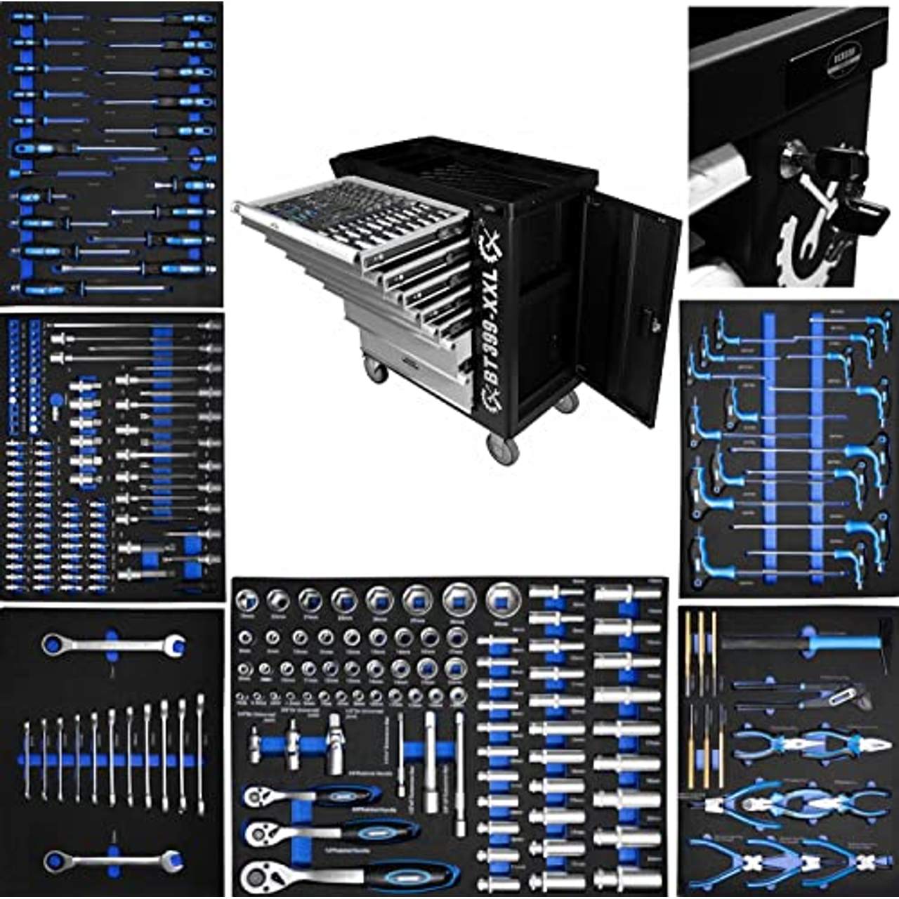 - Anpassbare Organisation: Das Produkt umfasst hochwertige Schaumstoffeinsätze, die eine individuelle Organisation der Werkzeuge im Wagen ermöglichen.